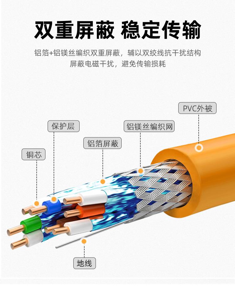 Cable de red Super Clase 7 de 10 millones de cables de red con núcleo de cobre de alta velocidad y doble blindaje para decoración de proyectos, cableado de par trenzado de 305 m