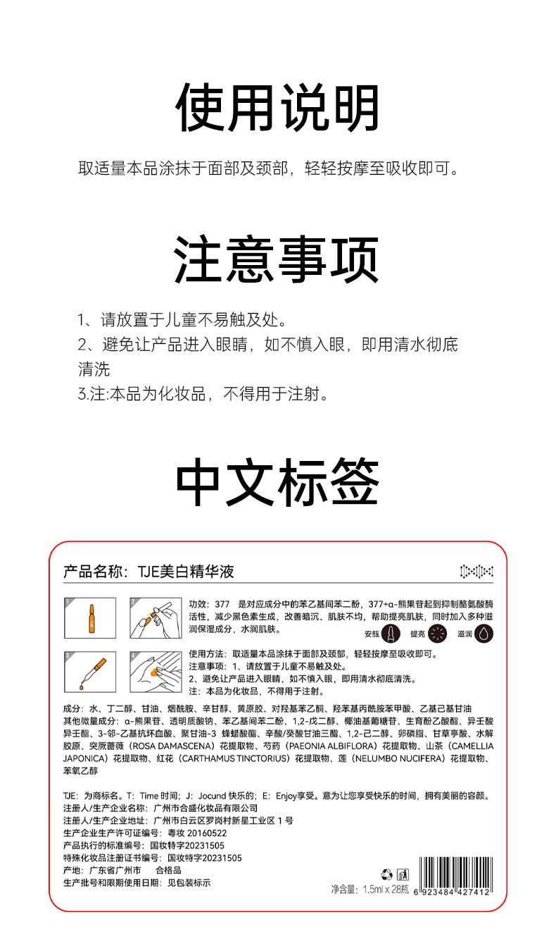 El pequeño hermano mayor Yang Seven, jefe, recomienda la ampolla de esencia blanqueadora TJE 377 para manchas de luz, aclara el color de la piel, hidrata y calma.