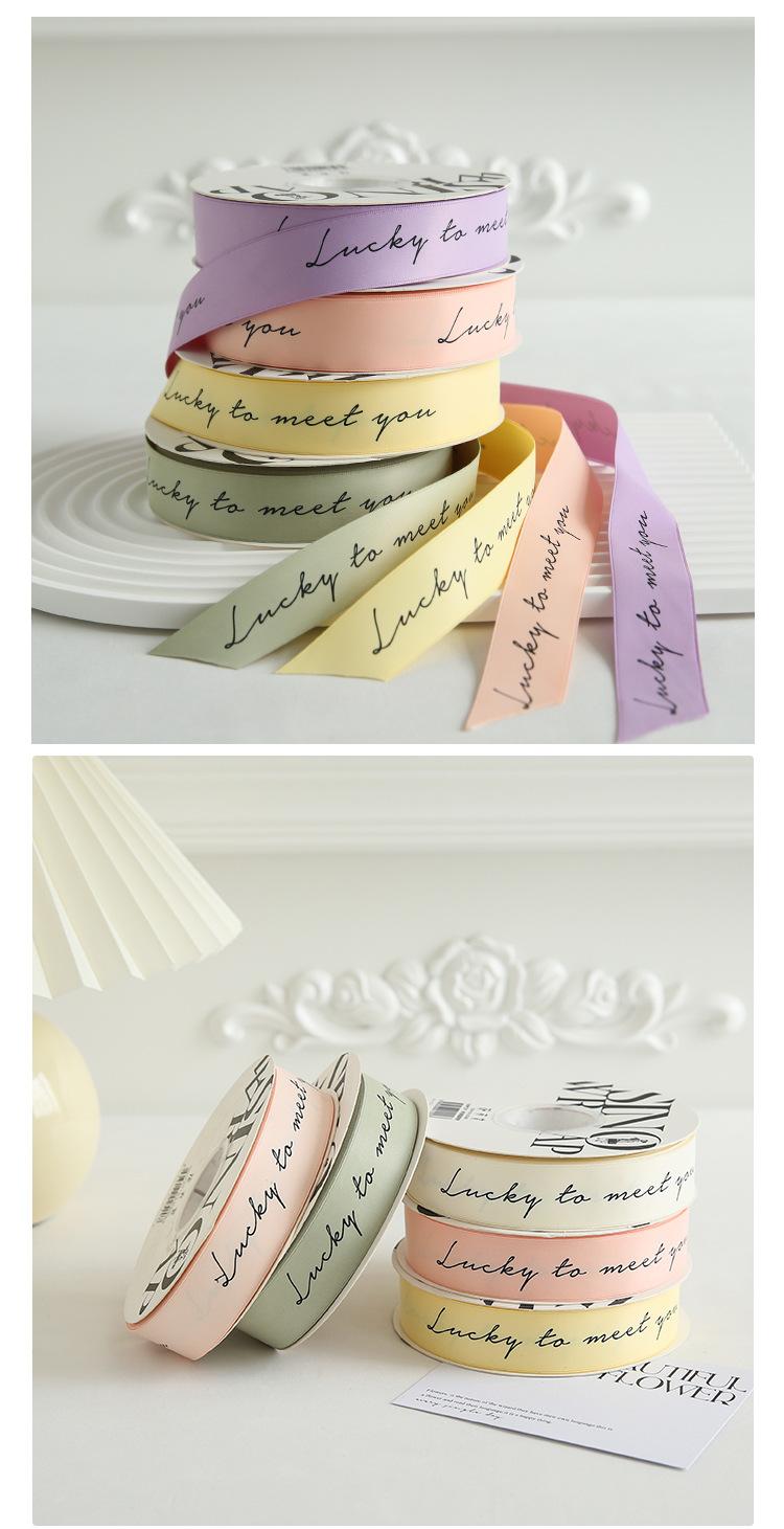 Cinta de Letras Inglesas de 2.5cm Cinta Lucky Meet You Lazo Decorativo para Ramo Cinta de Cincha Cinta de Cincha DIY