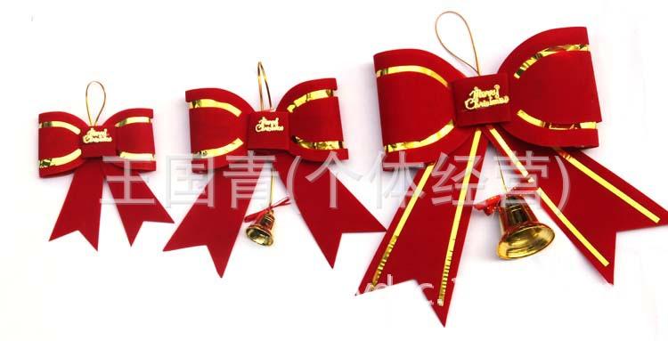 【nombre del producto】Lazo navideño de terciopelo rojo, colgante decorativo para árbol de Navidad.