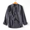 Cárdigan de lino de color liso con cuello y manga larga para hombre, camisa holgada para hombre