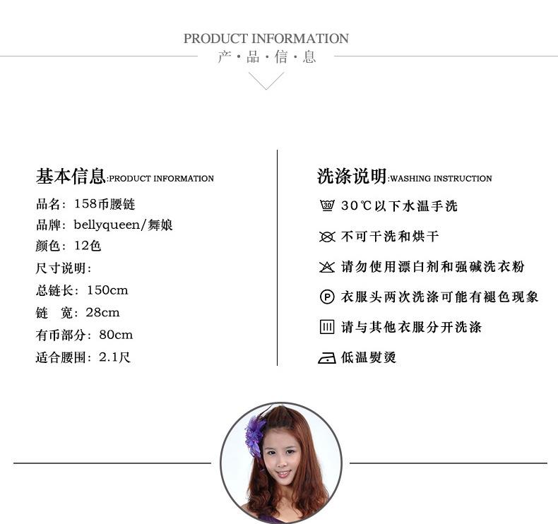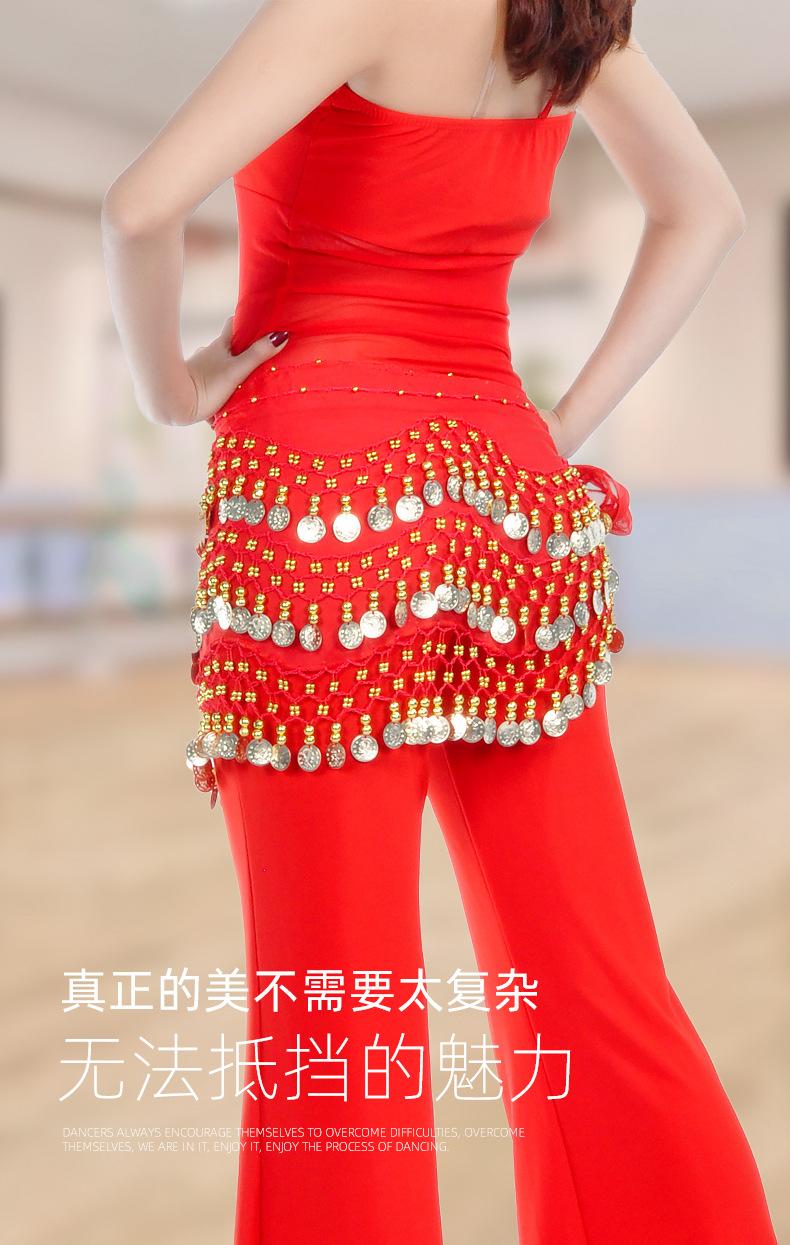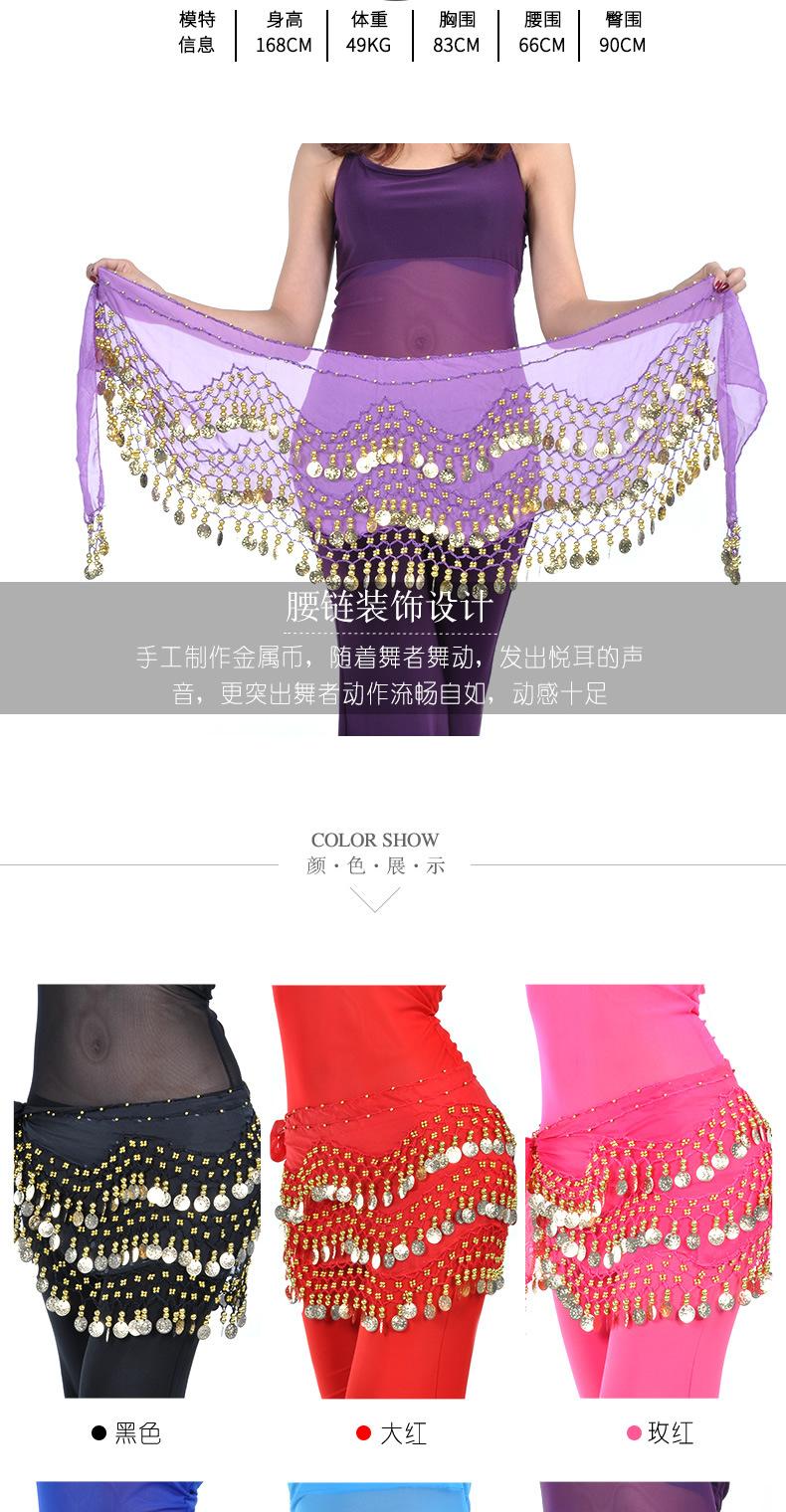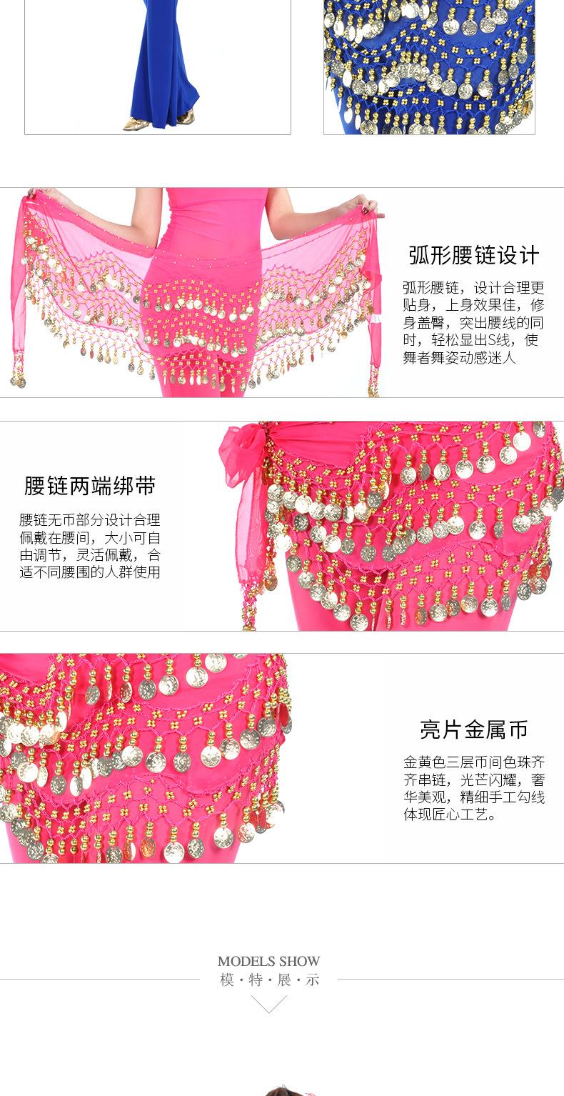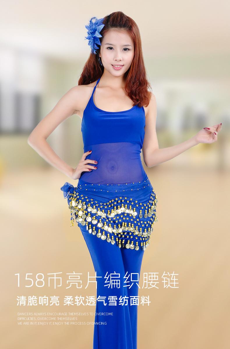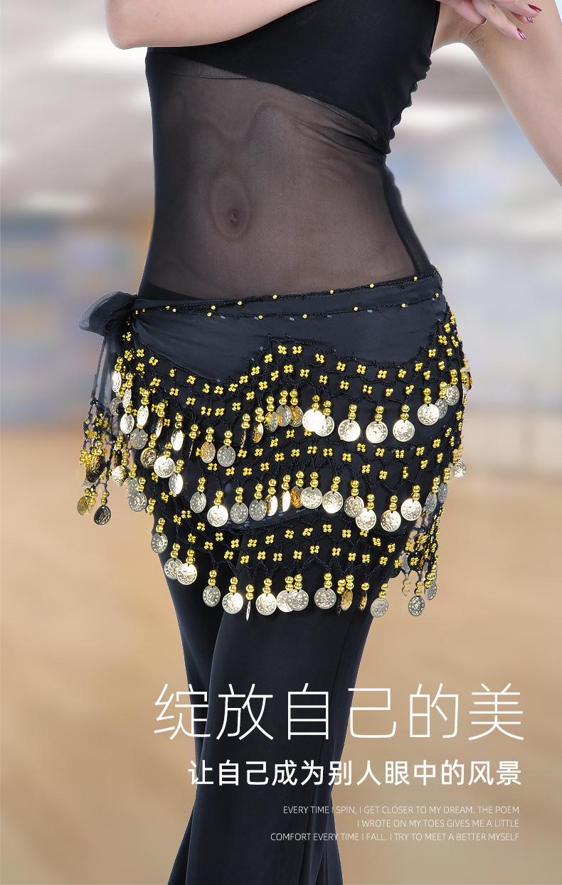 Ropa de danza del vientre cadena de cintura danza India toalla de cintura ropa de actuación decoración de cintura práctica toalla de cadera 158 moneda fábrica mayoreo