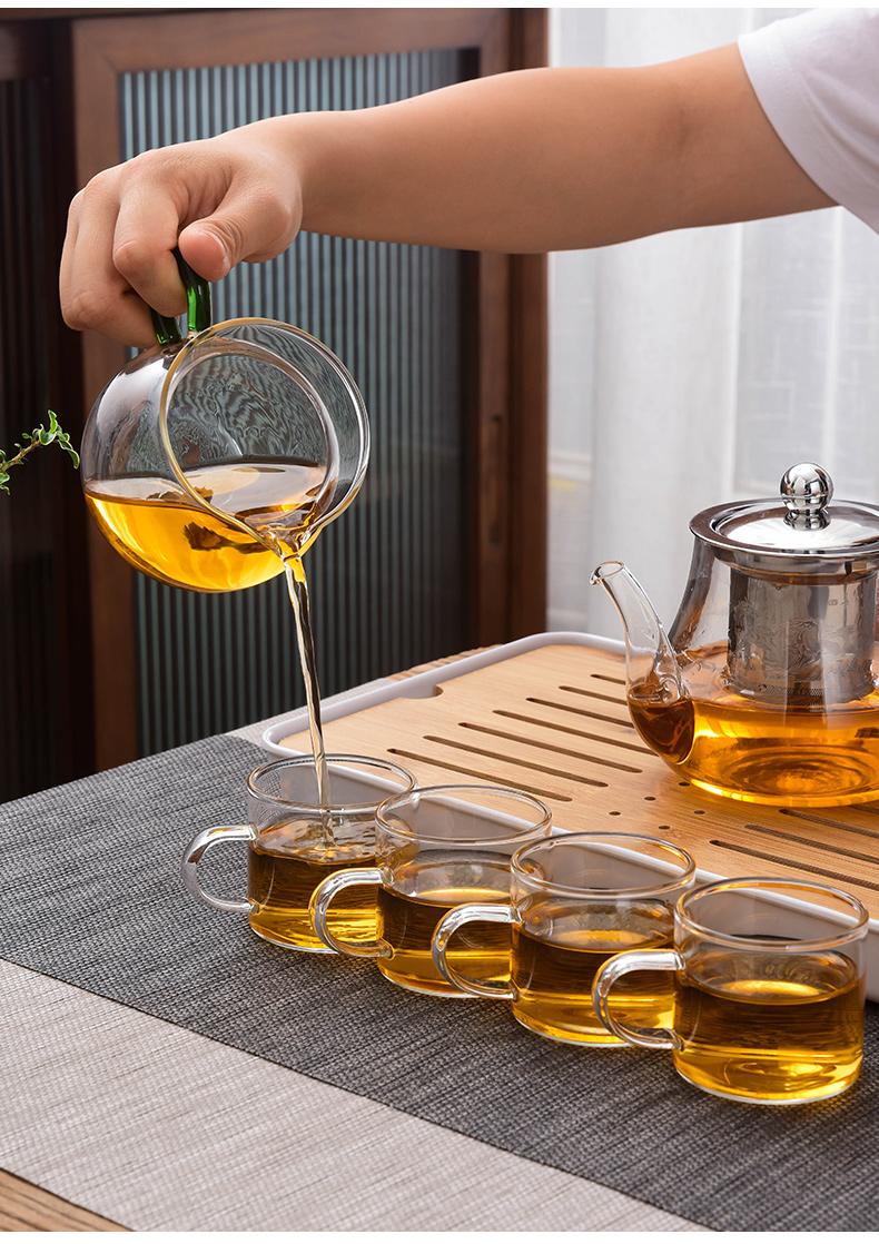 Tetera para Hacer Té Juego de Té de Vidrio Hogar Juego de Té Kung Fu Filtro Acero Inoxidable Tetera de Flores Taza de Té Burbuja Beiqin