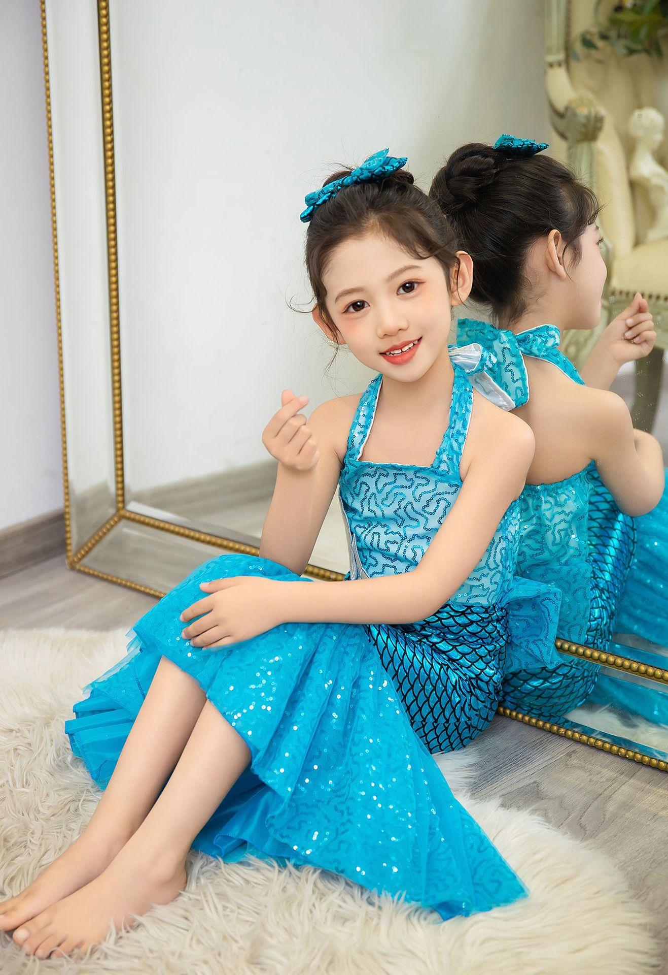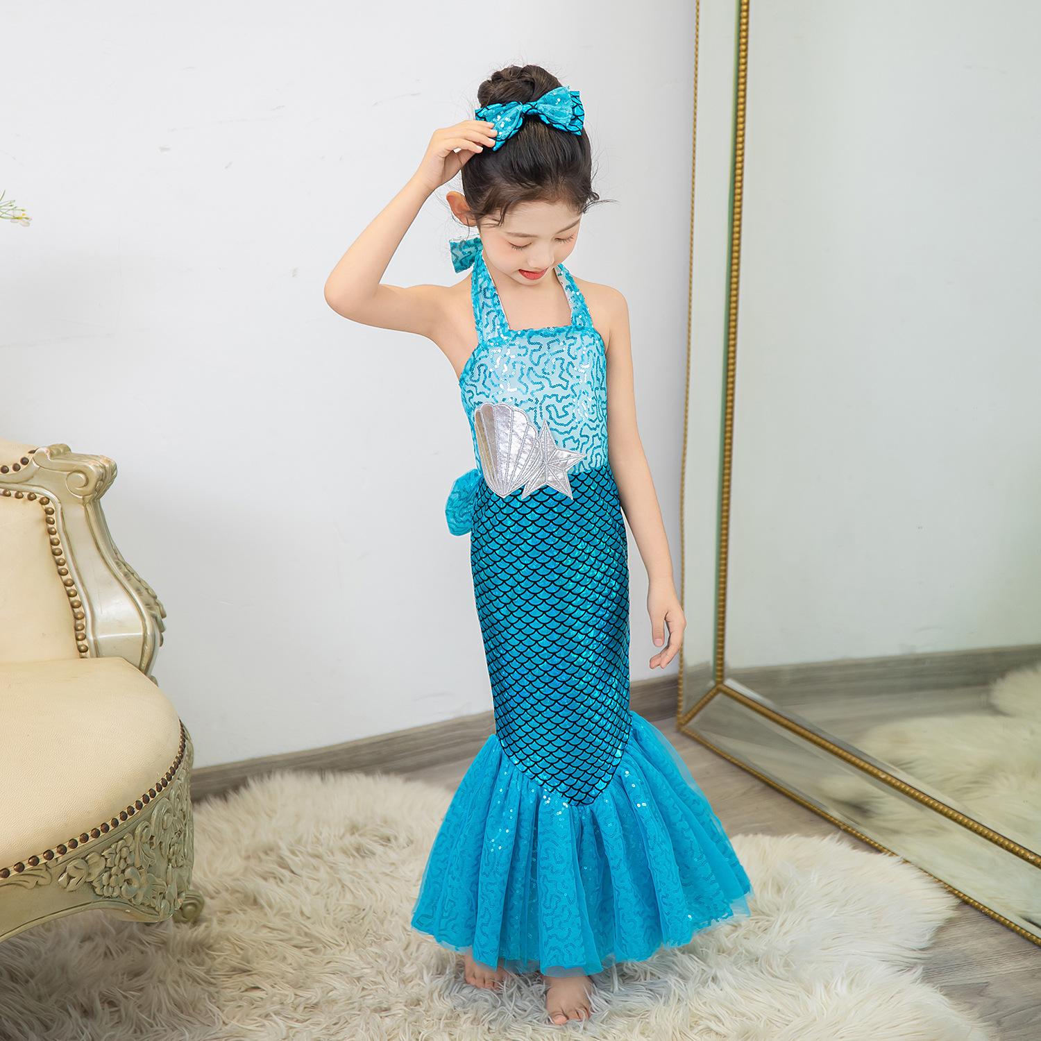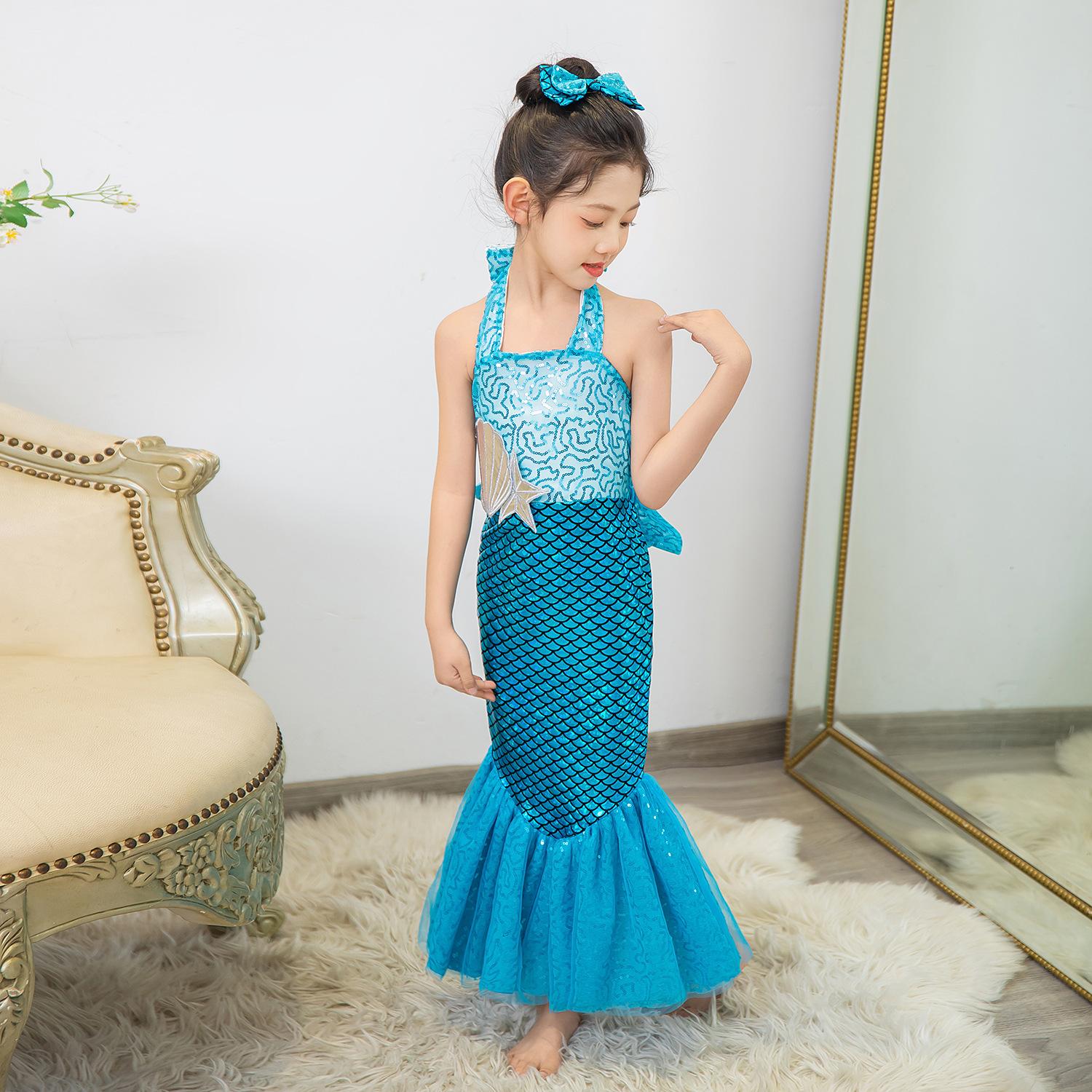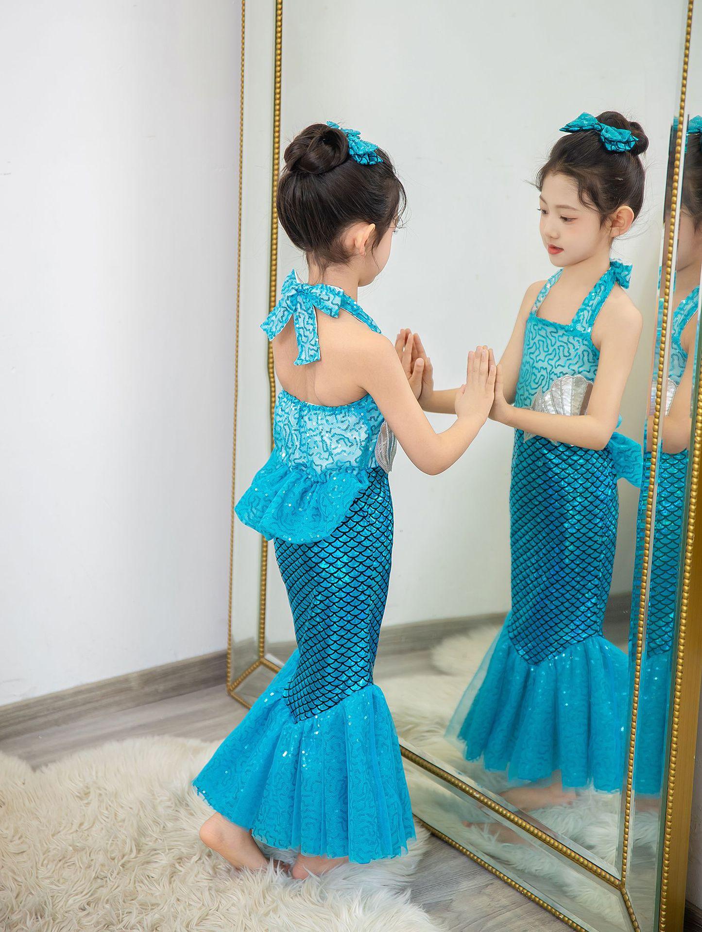 2023 nueva falda de cola de pez de princesa sirena, vestido de sirena para niñas, vestido de estilo occidental, vestido de princesa con lentejuelas para niñas