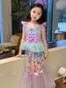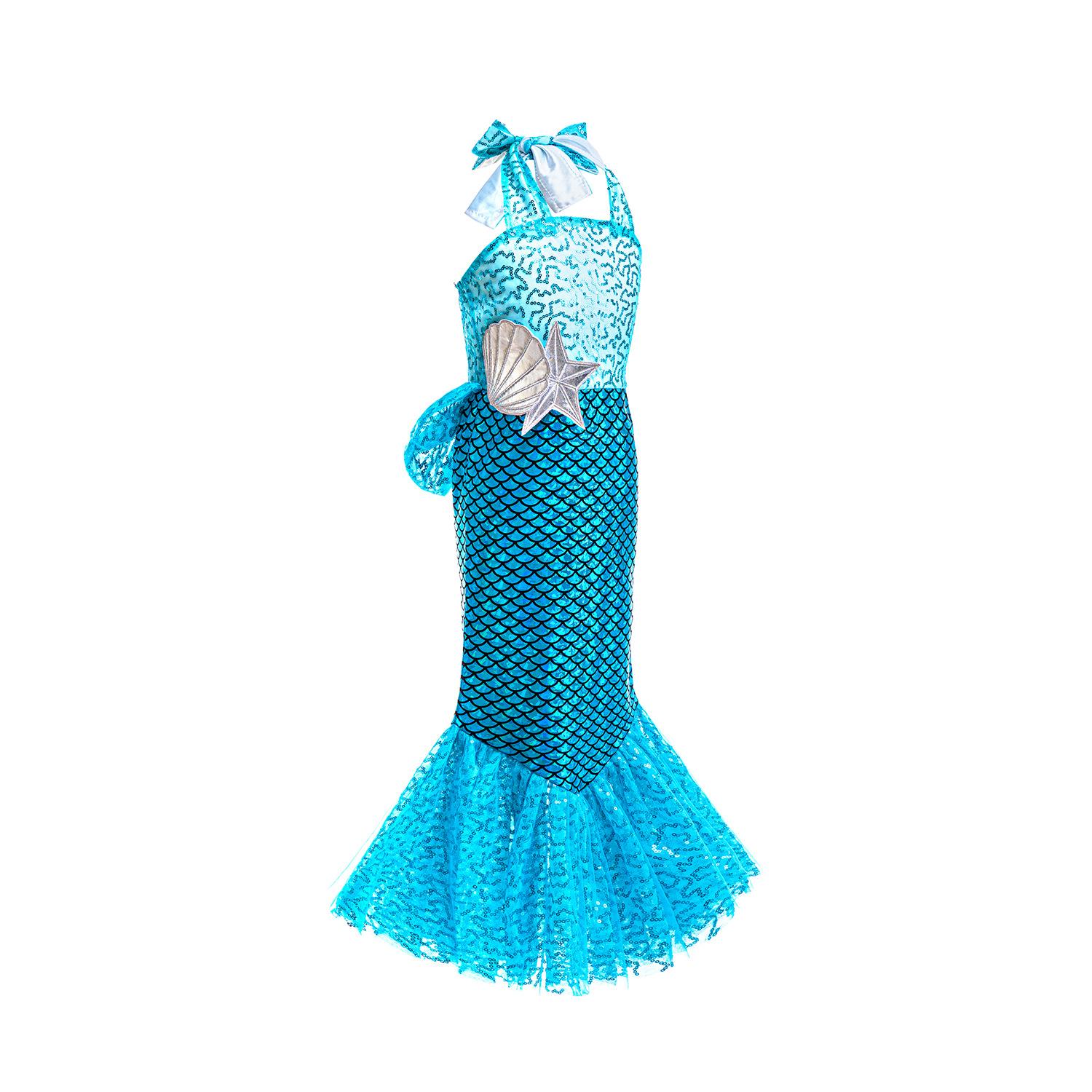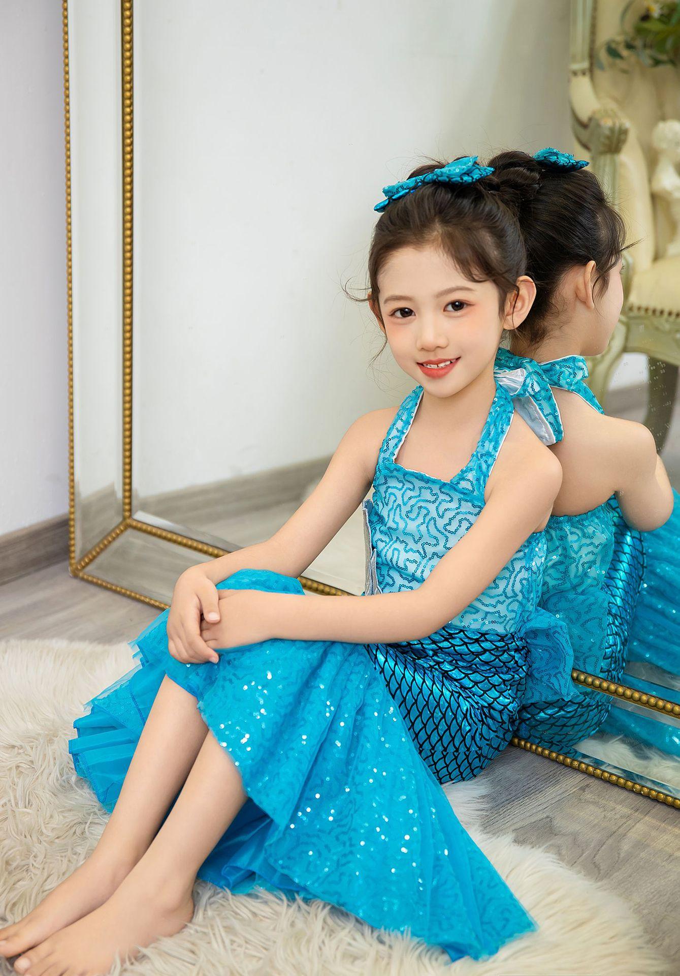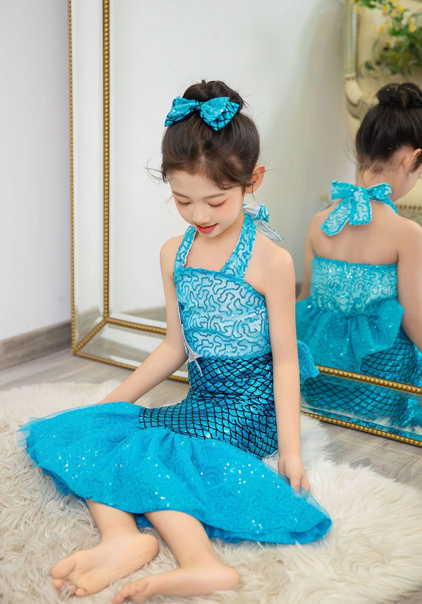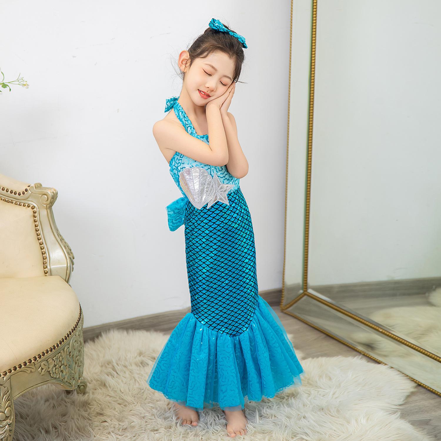 2023 nueva falda de cola de pez de princesa sirena, vestido de sirena para niñas, vestido de estilo occidental, vestido de princesa con lentejuelas para niñas