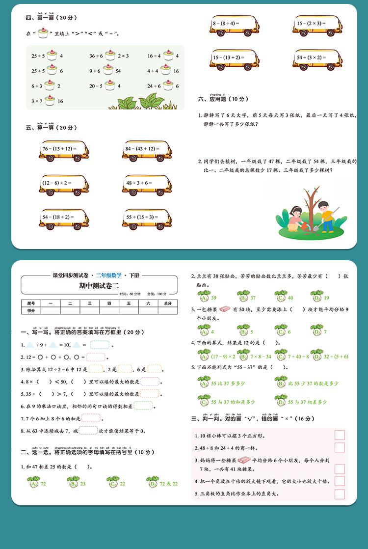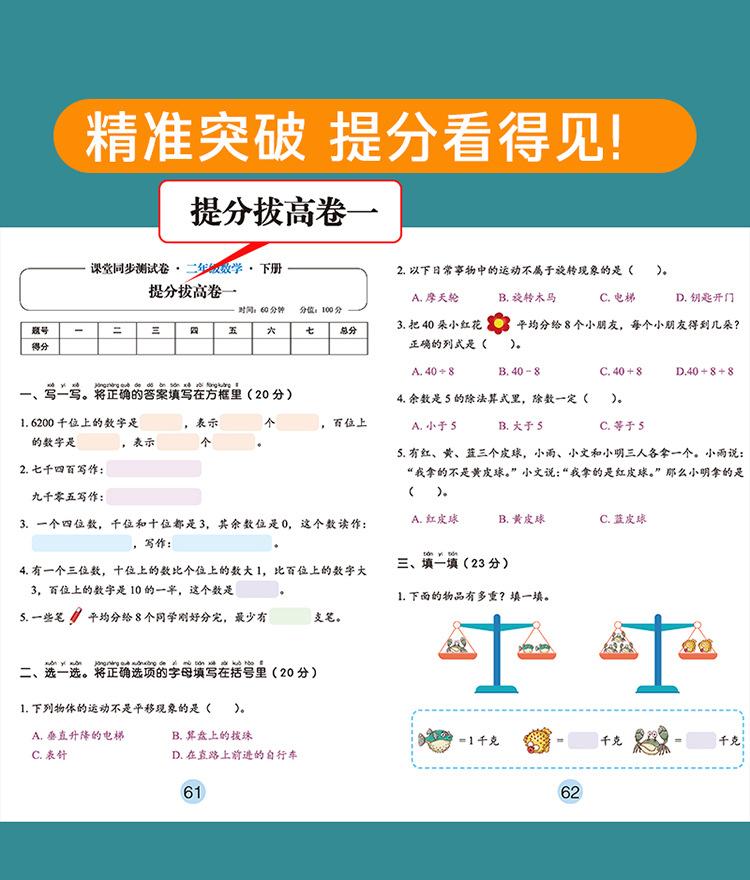 Prueba sincrónica en el aula, 1.º a 6.º grado, matemáticas chinas, prueba de inglés, prueba PEP completa
