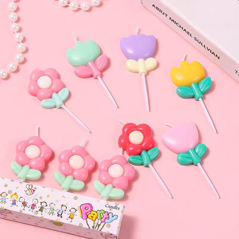 Compra Vela de cumpleaños, decoración para hornear pasteles, adornos para mesa de postres, vela de flor de tulipán al por mayor en Joom.pro