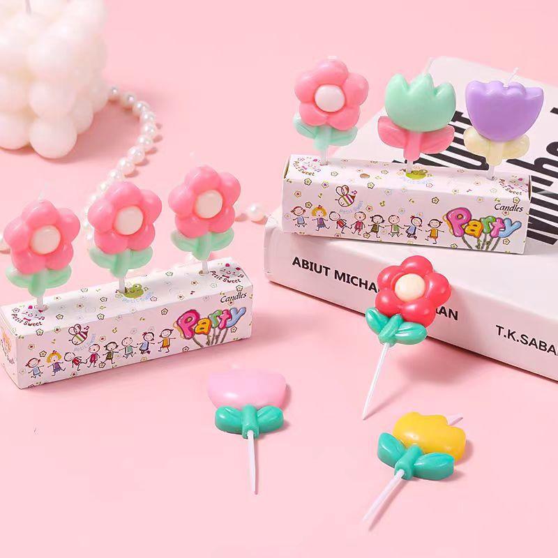Vela de cumpleaños, decoración para hornear pasteles, adornos para mesa de postres, vela de flor de tulipán