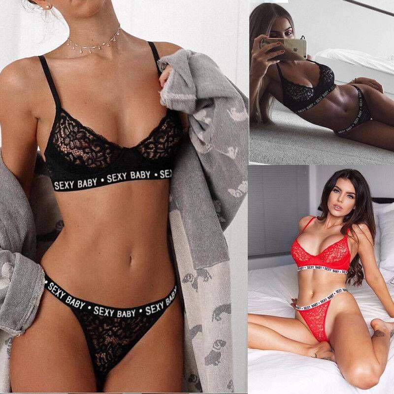 Nuevo eBay AliExpress sexy encaje vendaje divertido encaje de tres puntos ropa interior sexy conjunto de dos piezas