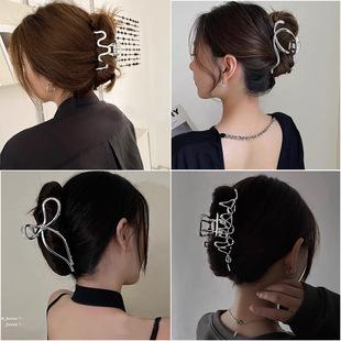 | Pinza de agarre de metal plateado geométrico coreano, pinza grande de tiburón, horquilla de alta gama, horquilla, adorno para la cabeza trasera femenina |