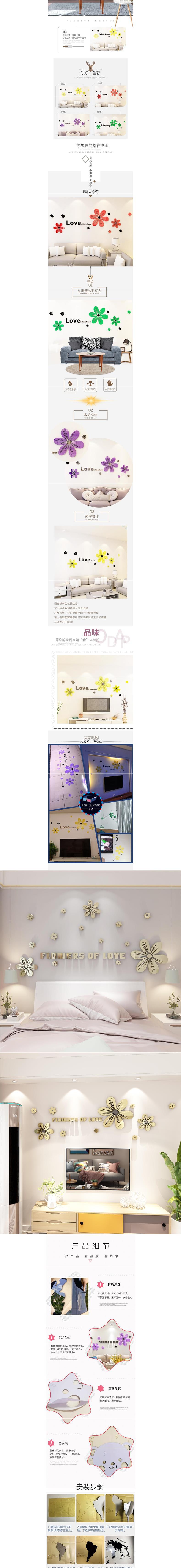 Pegatinas de pared tridimensionales acrílicas 3D con diseño de flores de verano para comedor, sala de estar, dormitorio, sofá, TV, fondo, decoración de pared, pegatinas autoadhesivas
