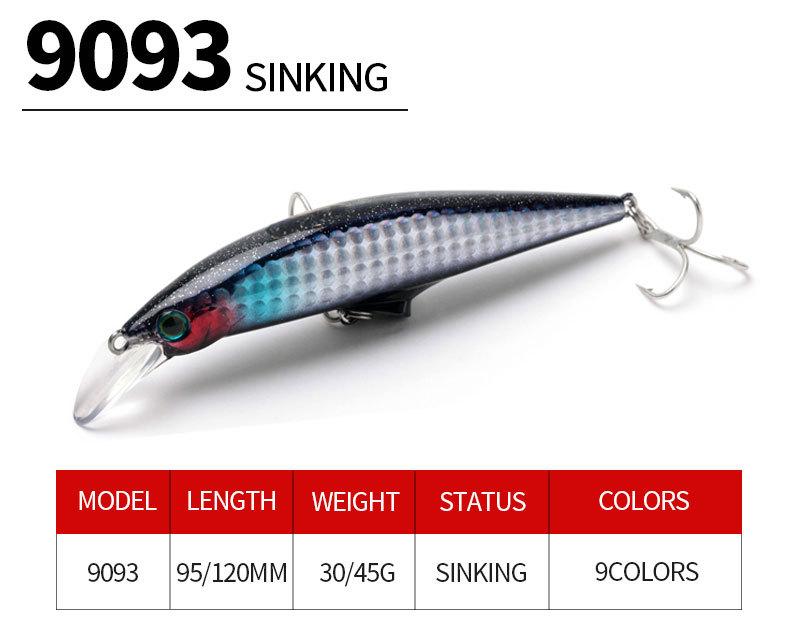 Cebo Luya de 95 mm/120 mm de tiro largo, cebo falso sumergido, cebo biónico para pesca en arroyos de agua dulce Mino 9093