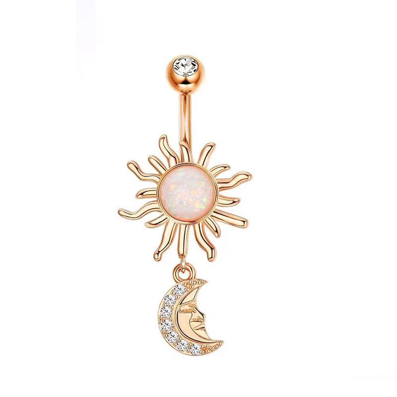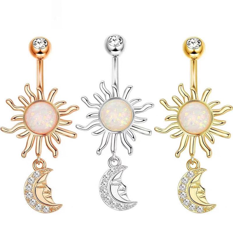 Anillo de ombligo de ópalo transfronterizo de Amazon, colgante de luna y sol, bola de diamante, clavo para el ombligo, joyería para piercing de diamante