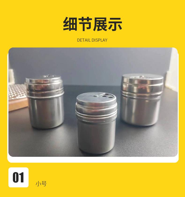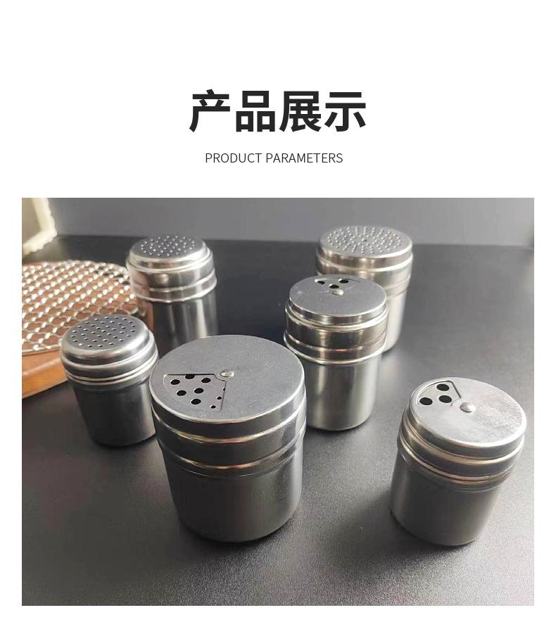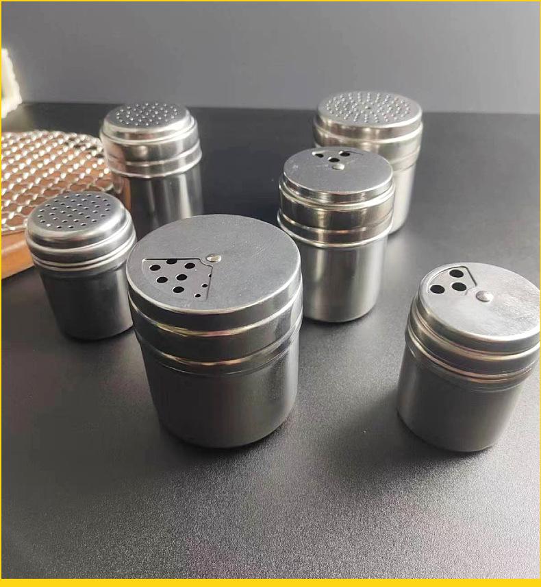 Caja de condimentos de acero inoxidable, tarro de condimentos, barril de palillos de dientes, barril de polvo, pimienta de barbacoa, tarro de pimienta, botella de pimienta, suministros de hotel