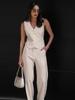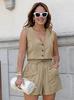 Caqui francés Algodón Lino Cuello en V Sin mangas Chaleco Shorts Traje casual 2025 Verano Europeo y Americano Conjunto de dos piezas