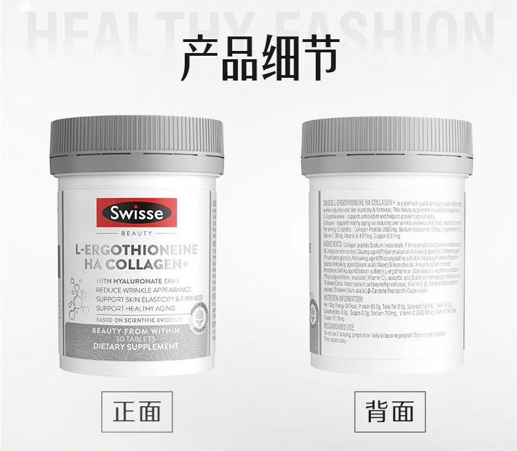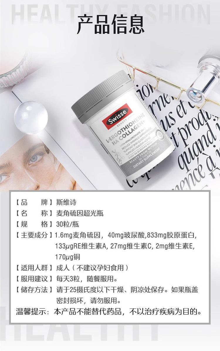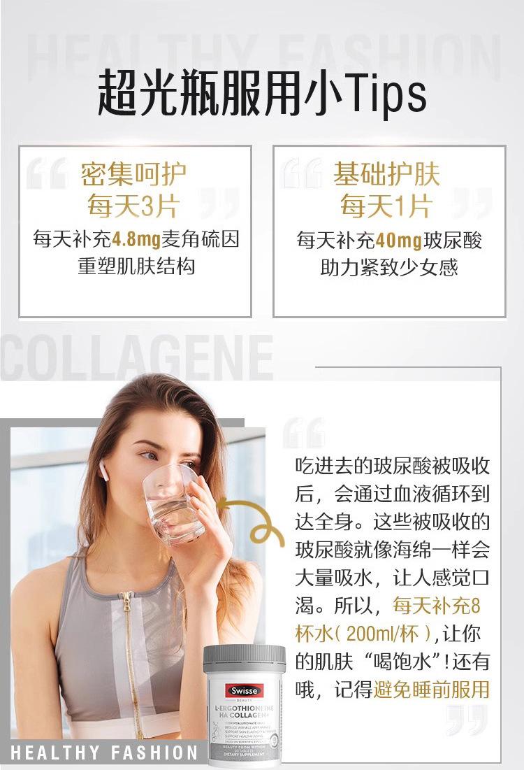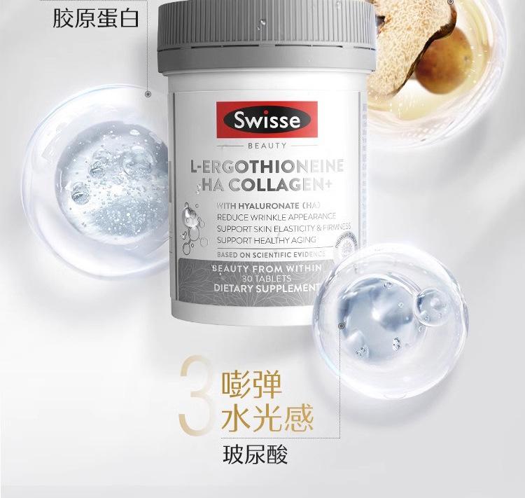 Tabletas Efervescentes de Agua Ligera Australian Swis-Se Ultra-Light 30 Cápsulas Ergotioneína Ácido Hialurónico Colágeno Oral