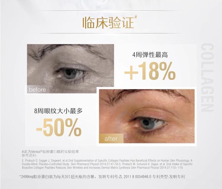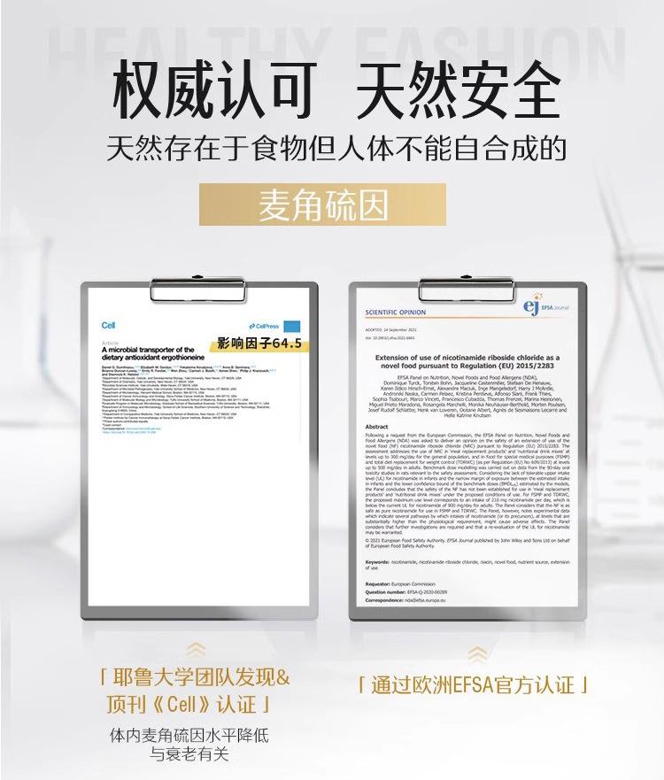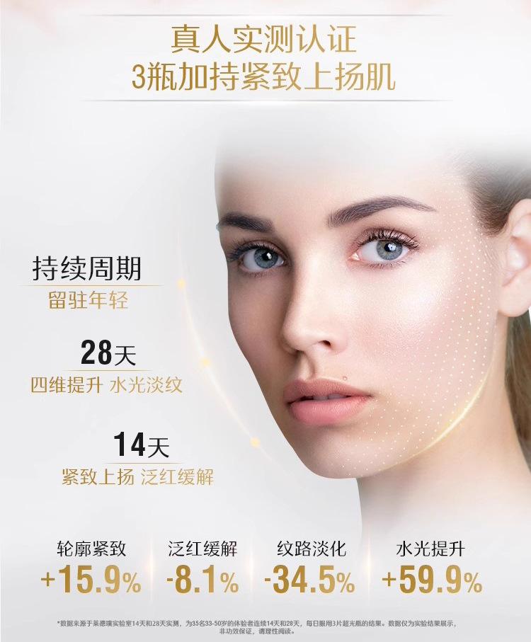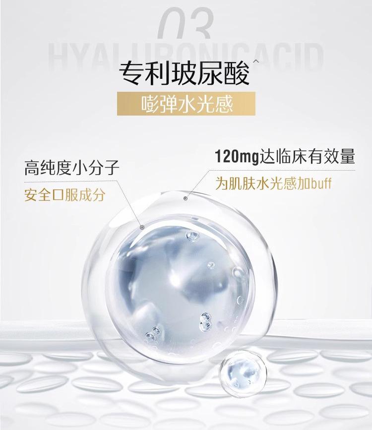 1.6mg ergothioneine, 40mg hyaluronic acid, 833mg collagen 133ugre vitamin a, 27mg vitamin c, 2m