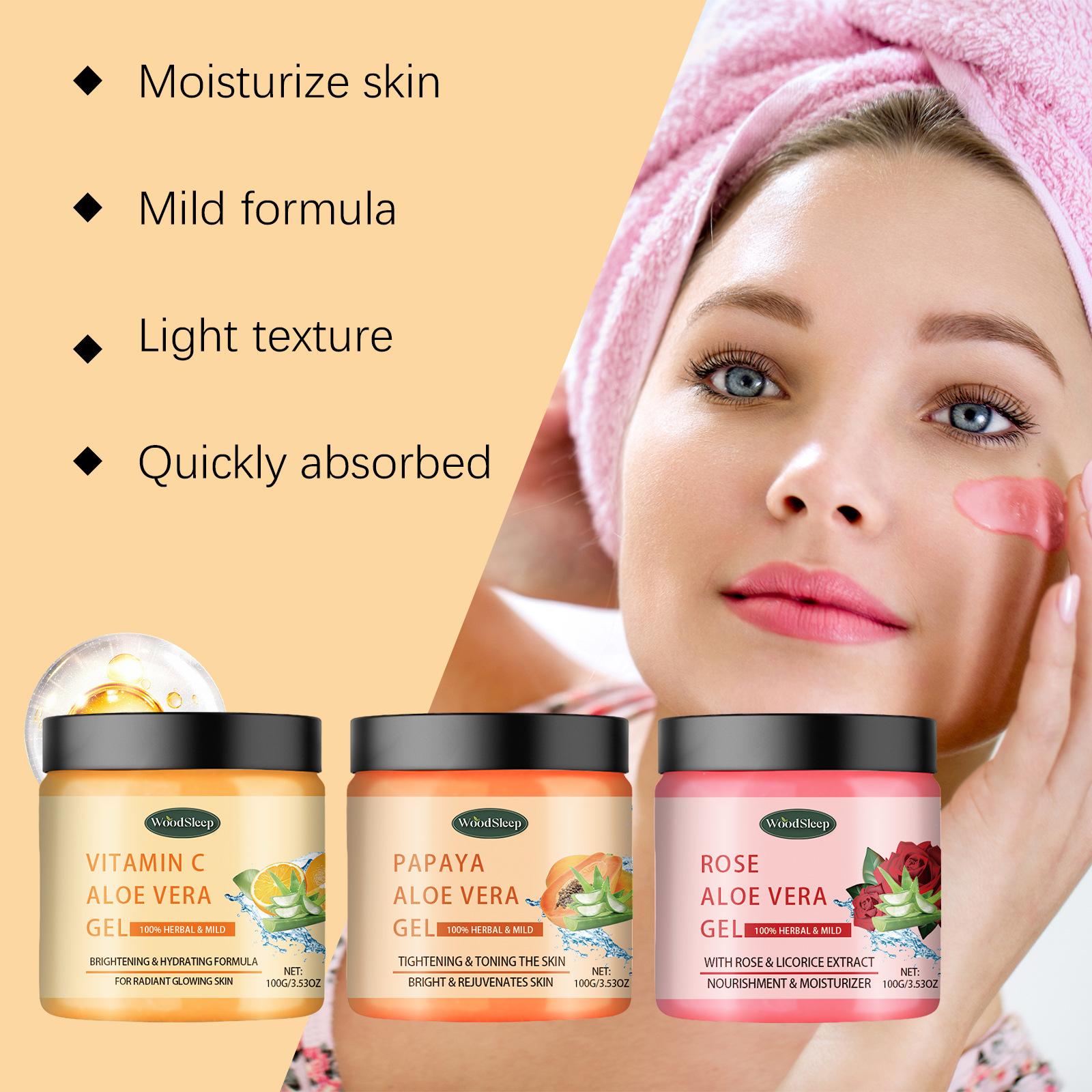 Crema de Aloe Vera Woodsleep Refrescante, Delicada y Rejuvenecedora Cuidado para el Brillo de la Piel Crema Hidratante e Hidratante para Después del Sol