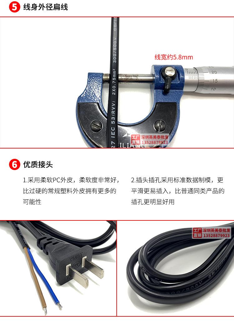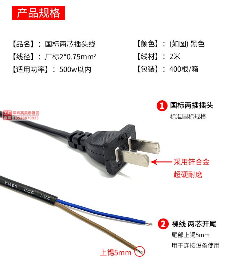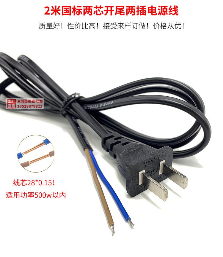 National standard two-plug opening tail*national standard 2 plugs single head*2*copper clad aluminum*2*0.5*pvc