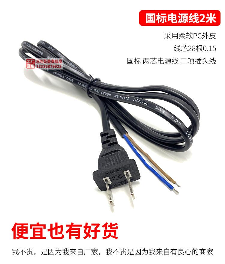 Cable de alimentación de dos clavijas de 2 metros con enchufe de dos núcleos, directo de fábrica