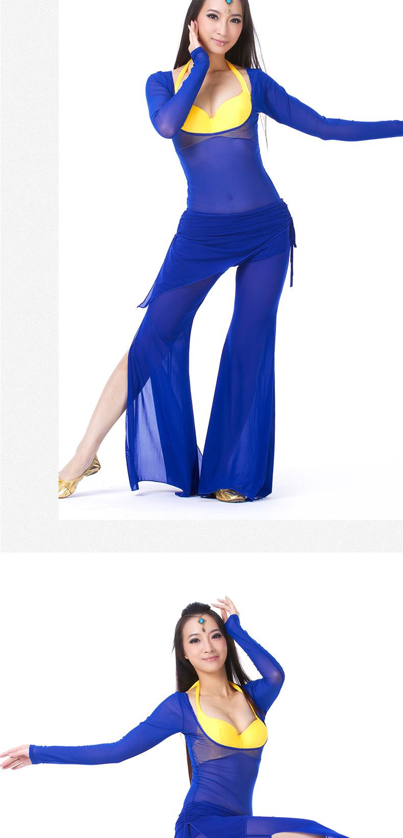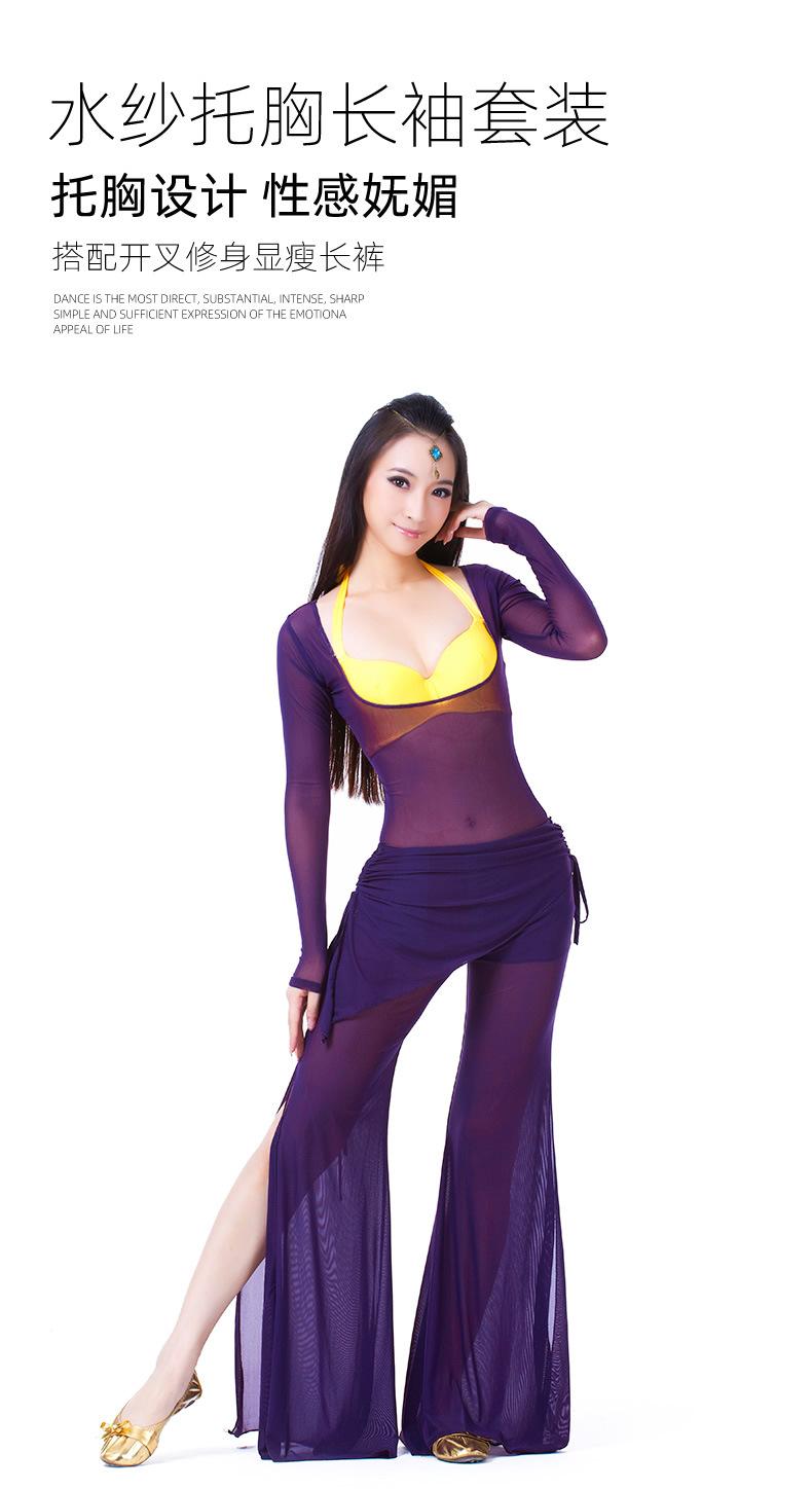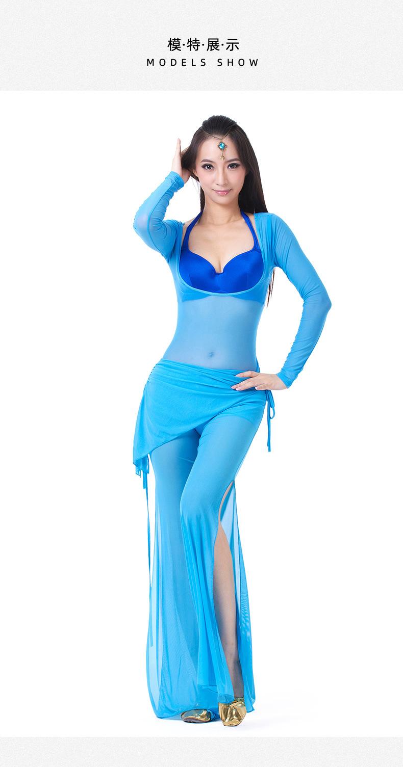 Traje de danza del vientre de manga larga con escote en V y gasa de agua, ropa de danza del vientre, ropa de danza del vientre conjuntada, venta al por mayor