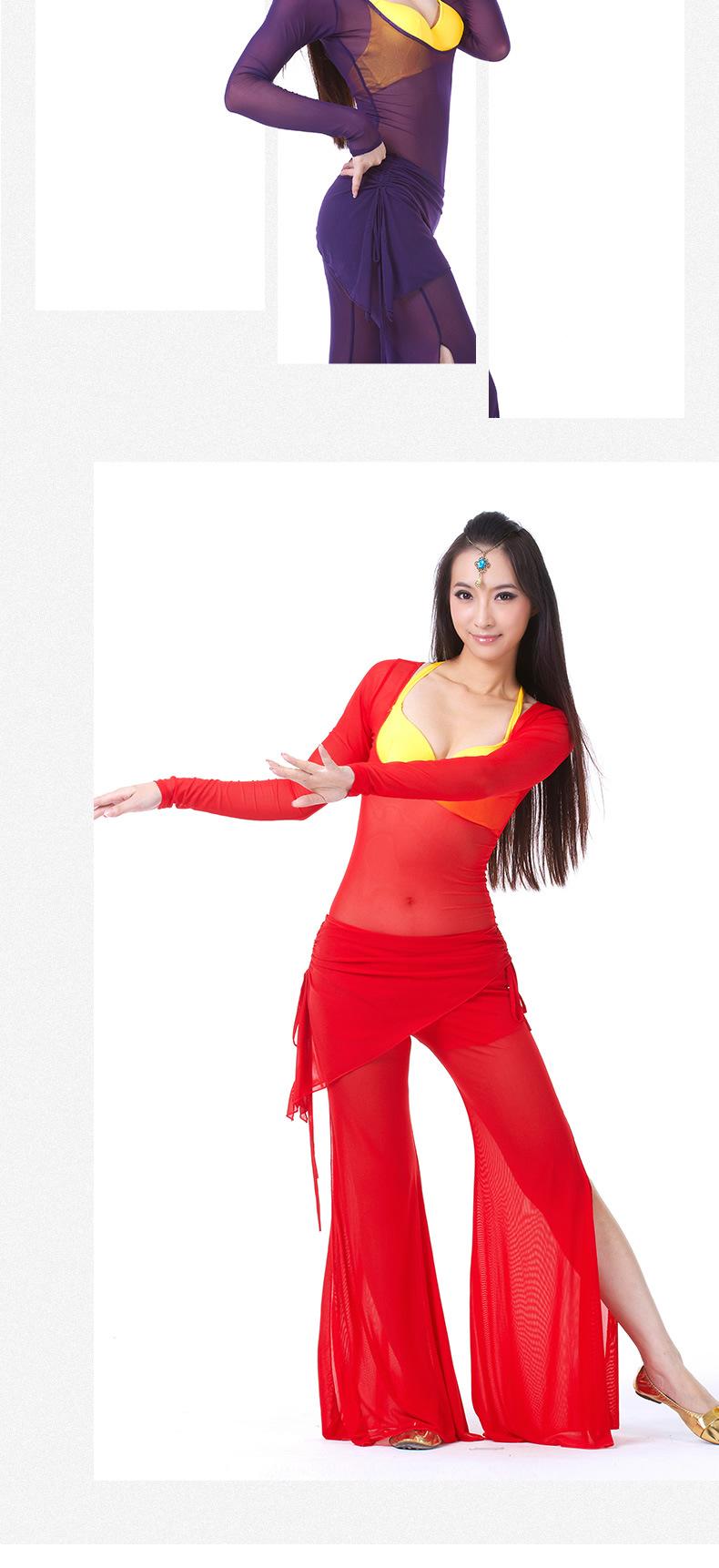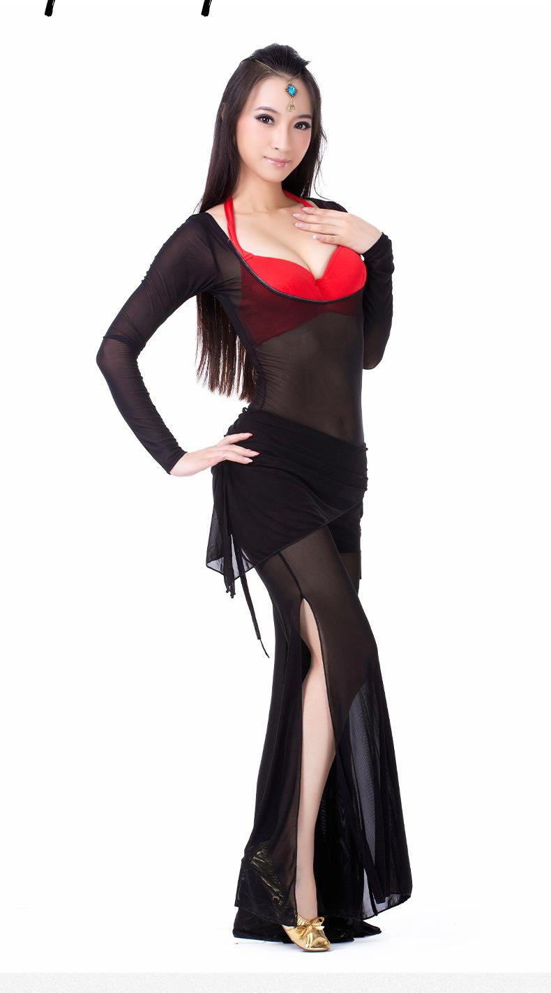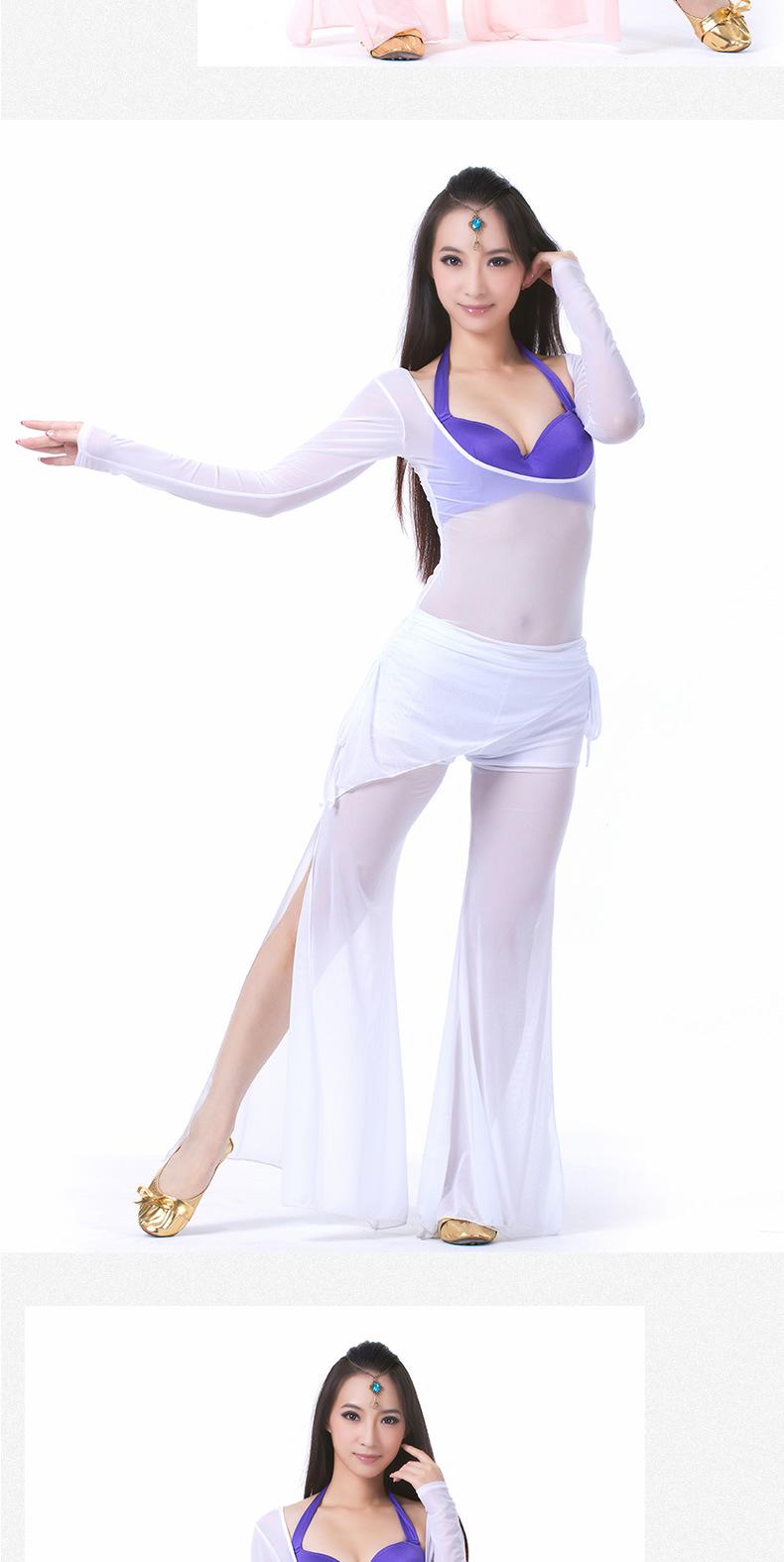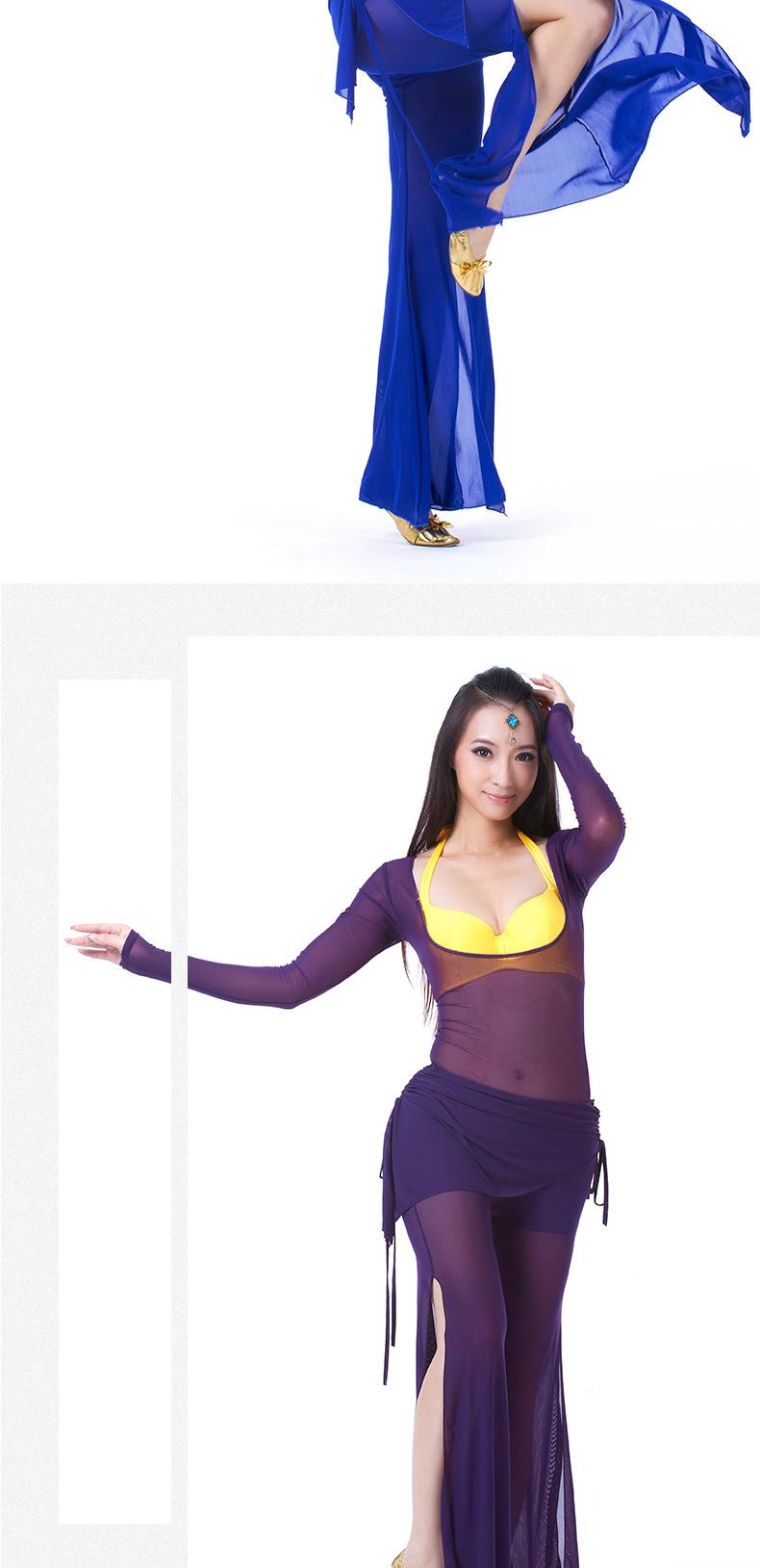 Traje de danza del vientre de manga larga con escote en V y gasa de agua, ropa de danza del vientre, ropa de danza del vientre conjuntada, venta al por mayor