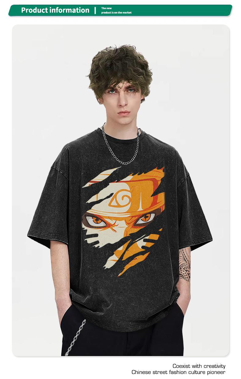 Compra Camiseta de Manga Corta Retro Vintage de Calle Japonesa para Hombre y Mujer Oversize Nacional Trendy Suelta Vieja de Media Manga al por mayor en Joom.pro