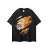 Camiseta de Manga Corta Retro Vintage de Calle Japonesa para Hombre y Mujer Oversize Nacional Trendy Suelta Vieja de Media Manga