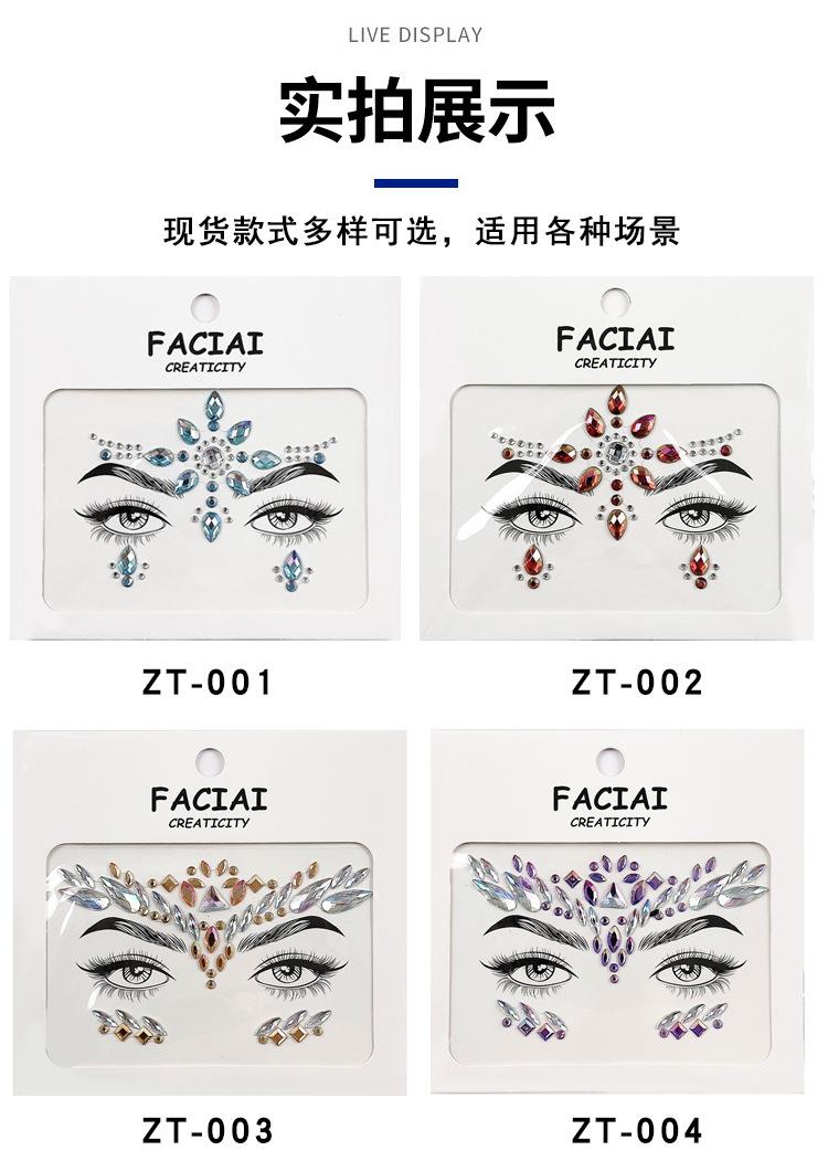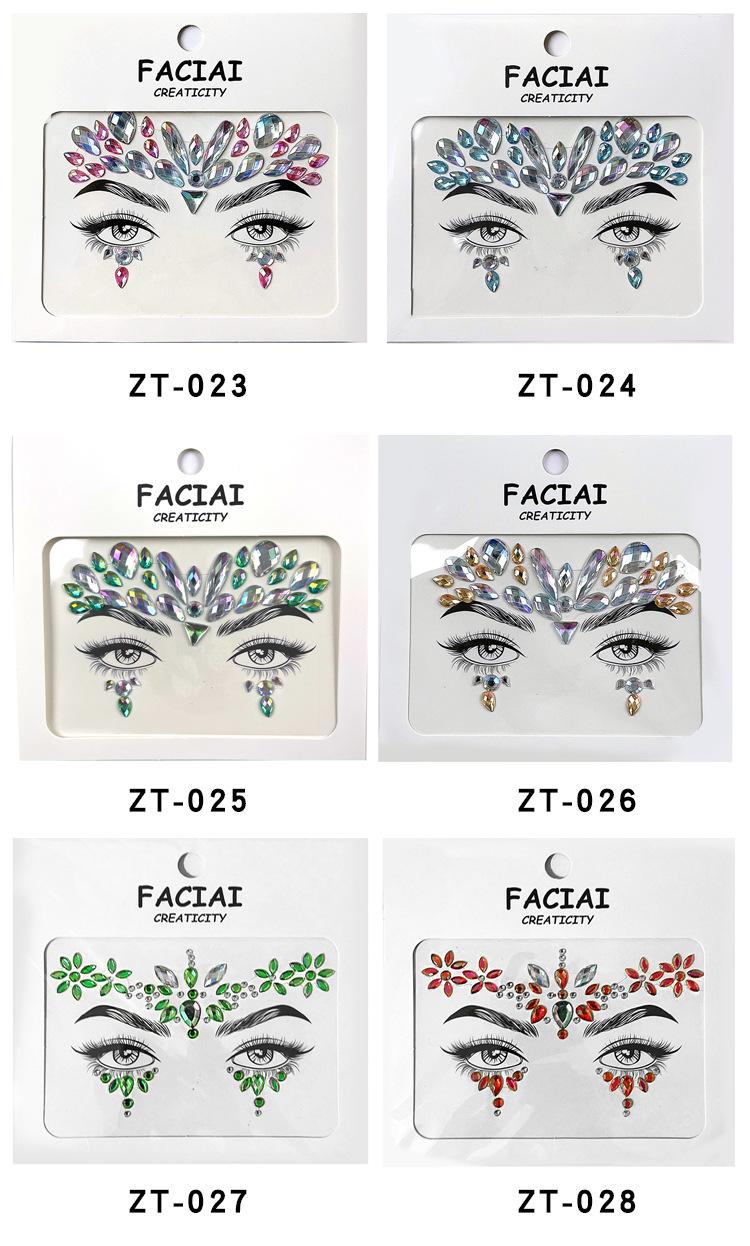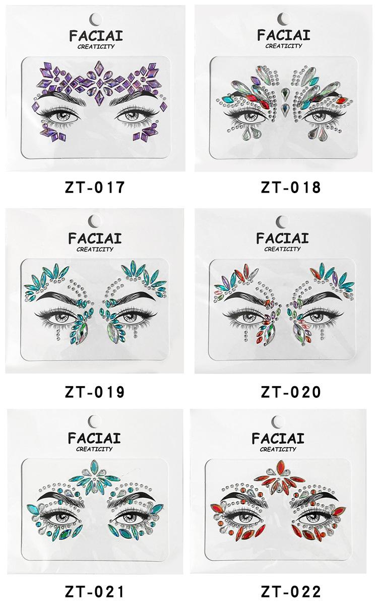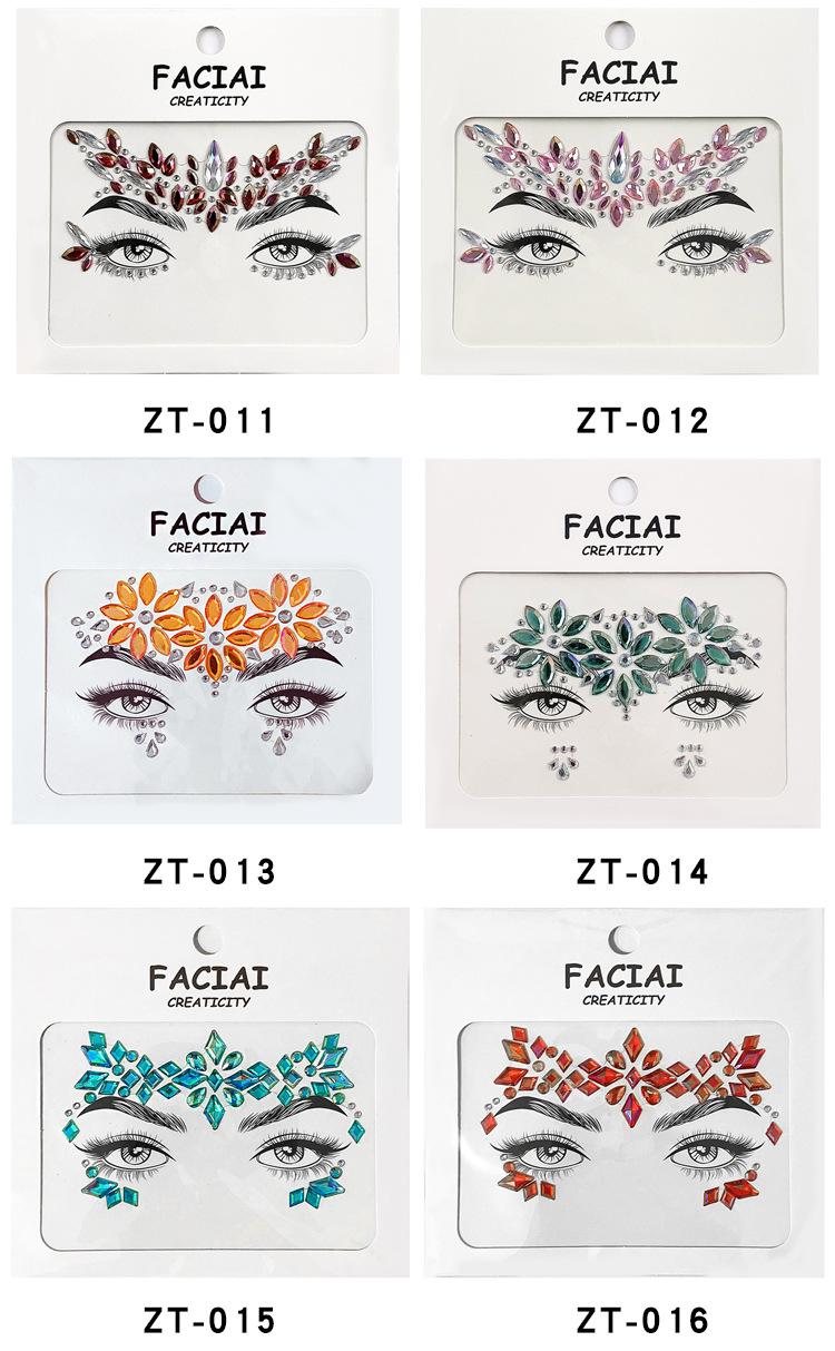 Pegatina de tatuaje de diamante de colores para mascarada europea y americana, música, Halloween, ojo, cara, pegatina de diamante, pegatina acrílica para cara, maquillaje
