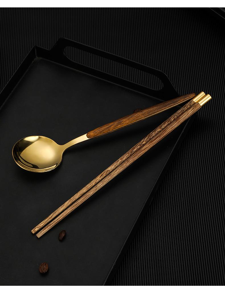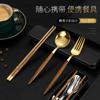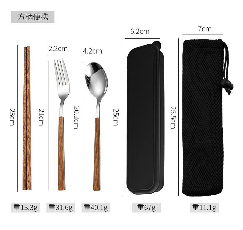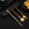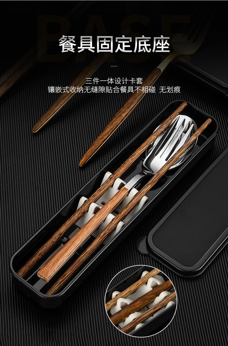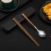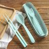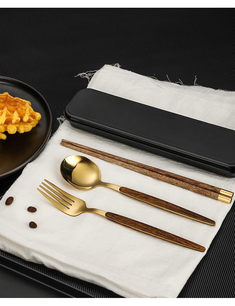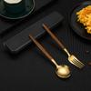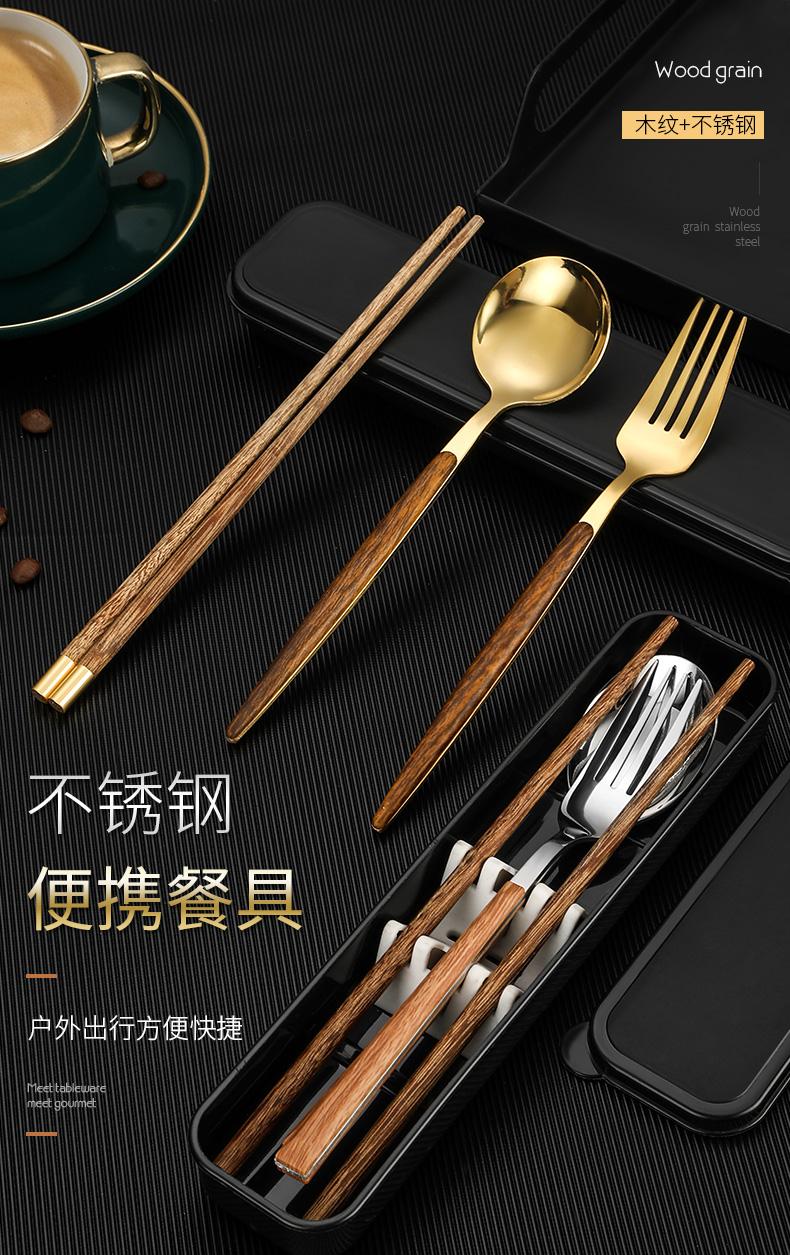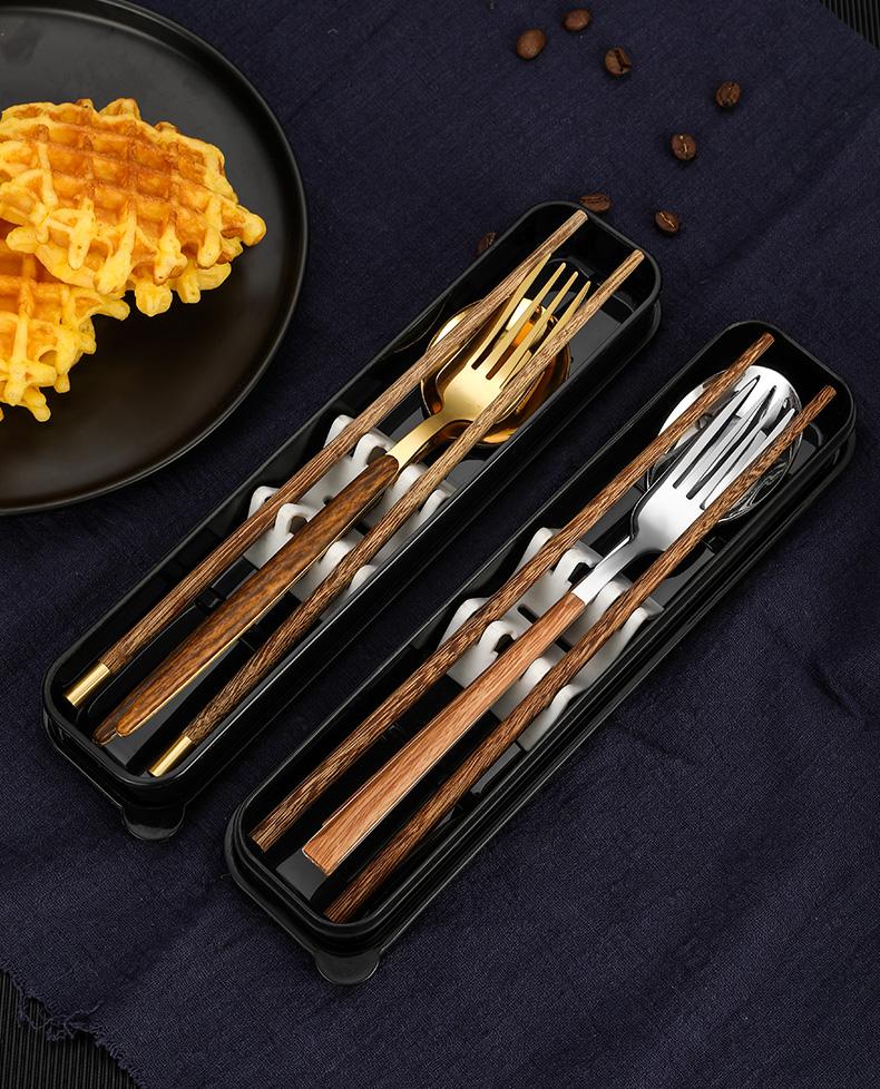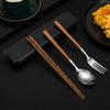 Juego de tres piezas de palillos chinos, cuchara, vajilla portátil de acero inoxidable, caja de almacenamiento para niños, tenedor, estudiante, palillos de madera individuales