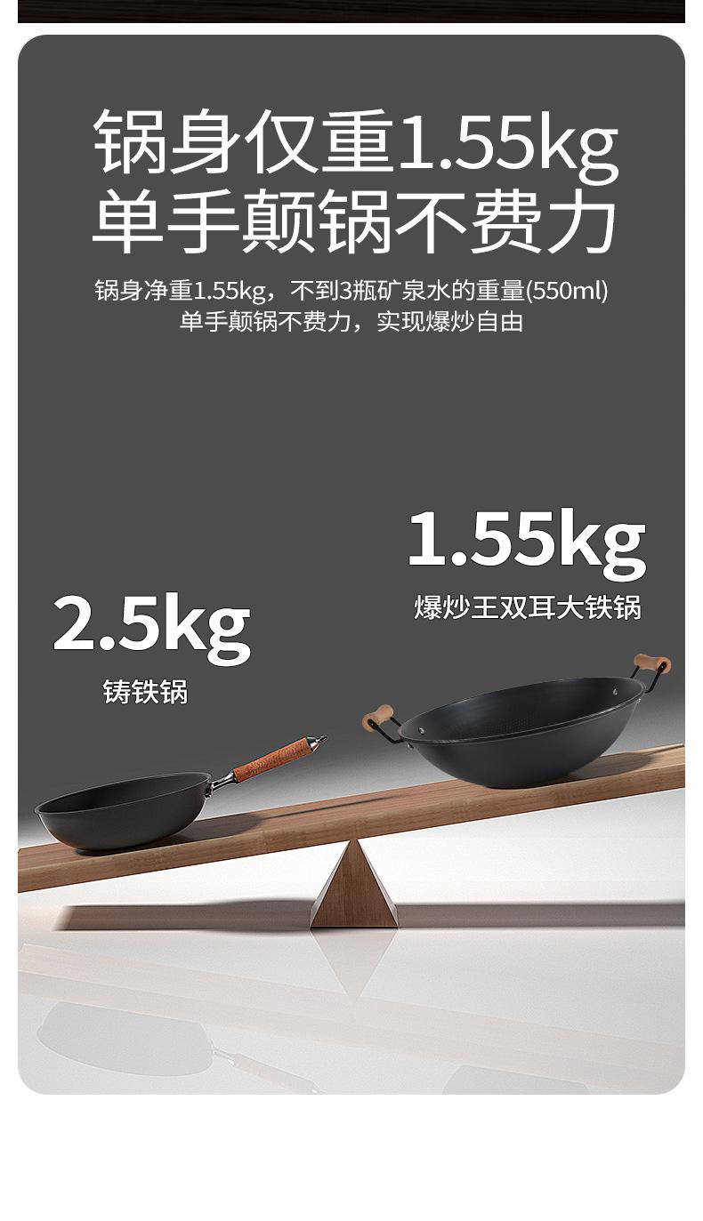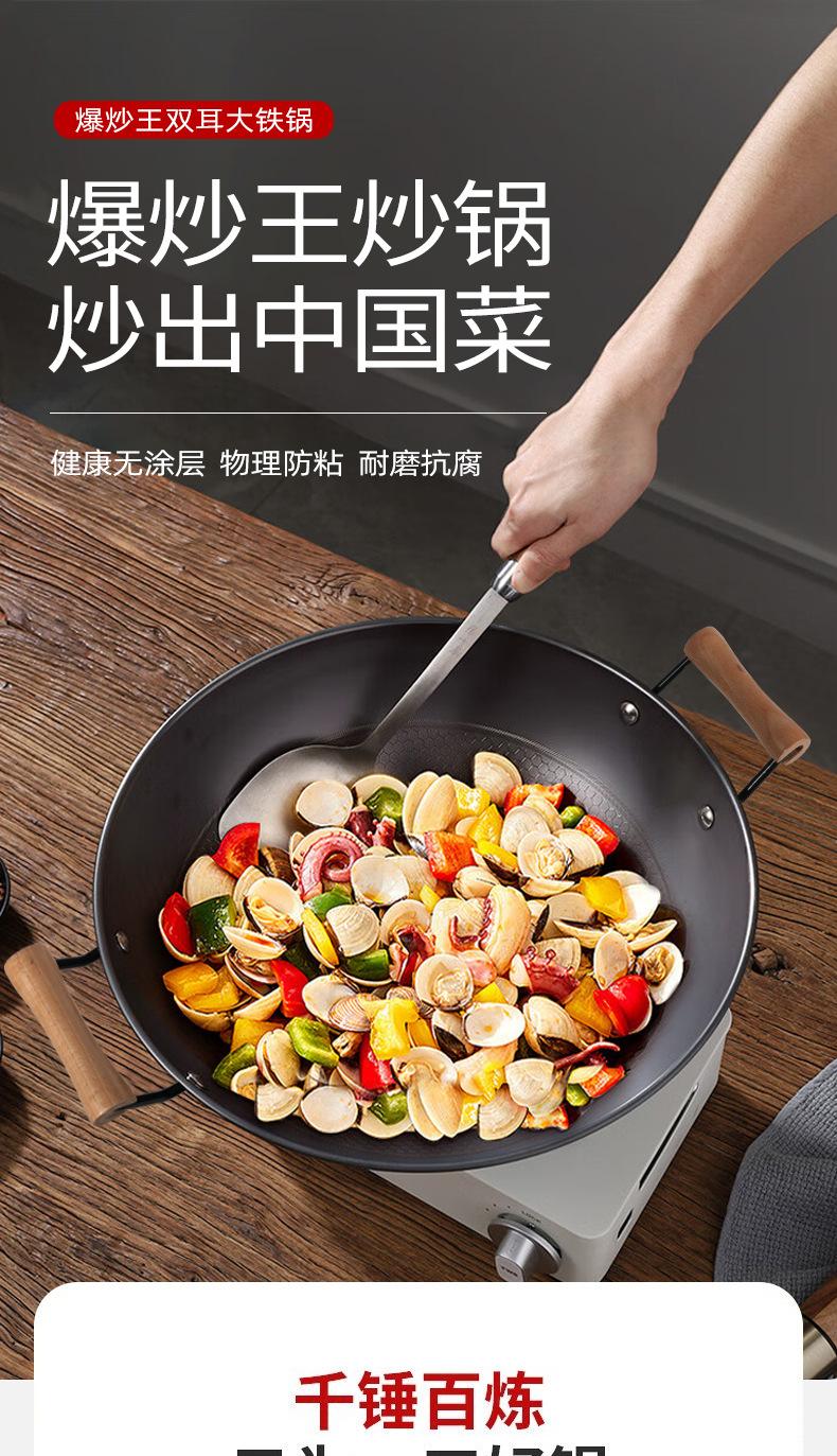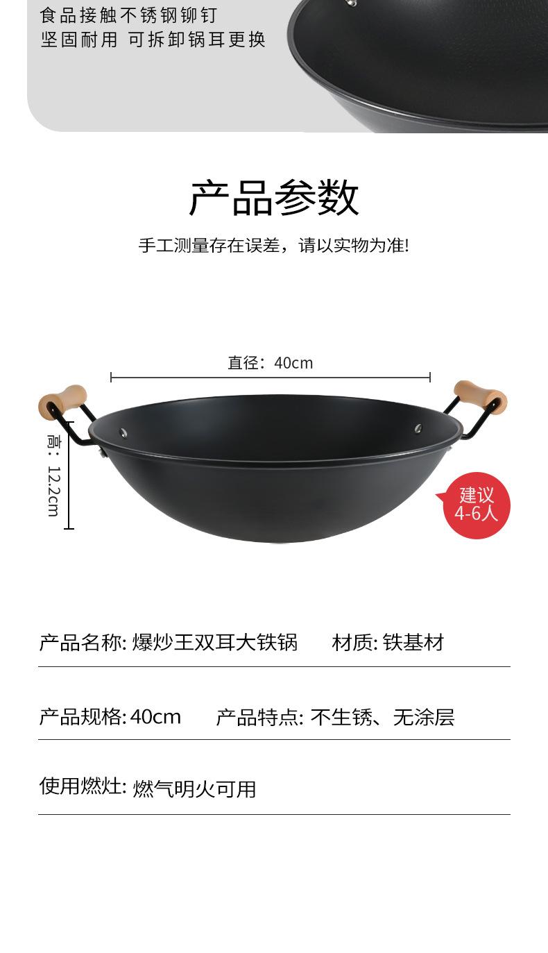 40cm stir-fried king double ear iron pot 0 coating, 42cm stir-fried king double-eared iron pot 0 coating light...