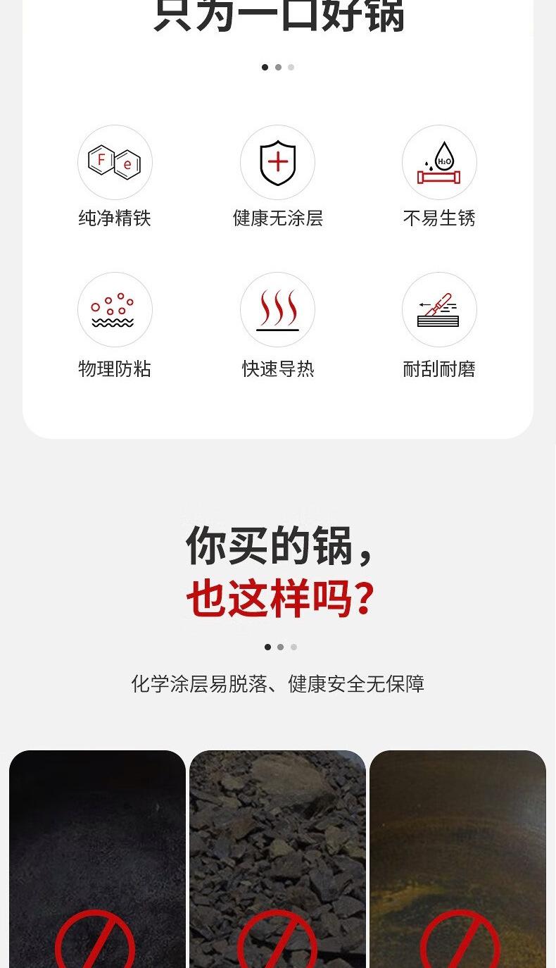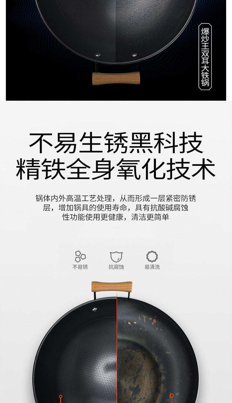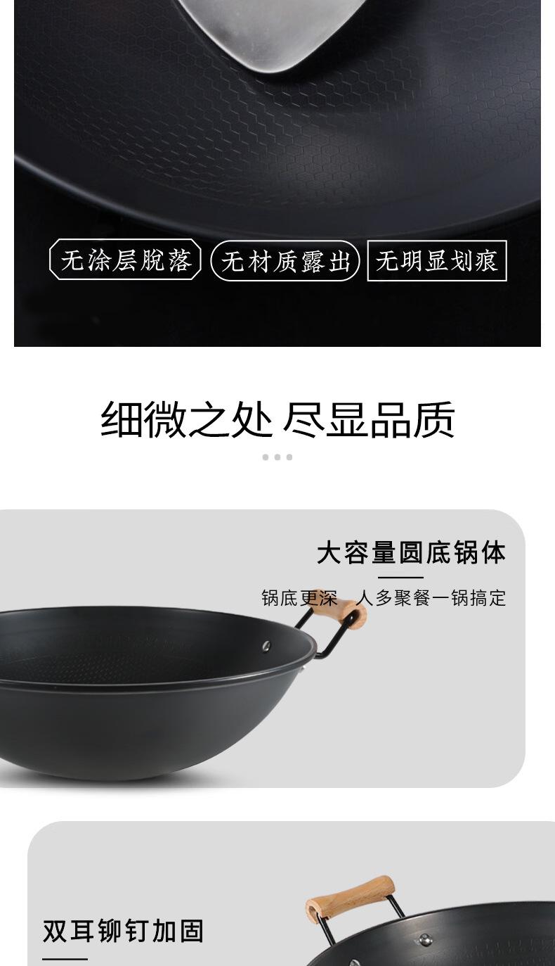 40cm stir-fried king double ear iron pot 0 coating, 42cm stir-fried king double-eared iron pot 0 coating light...