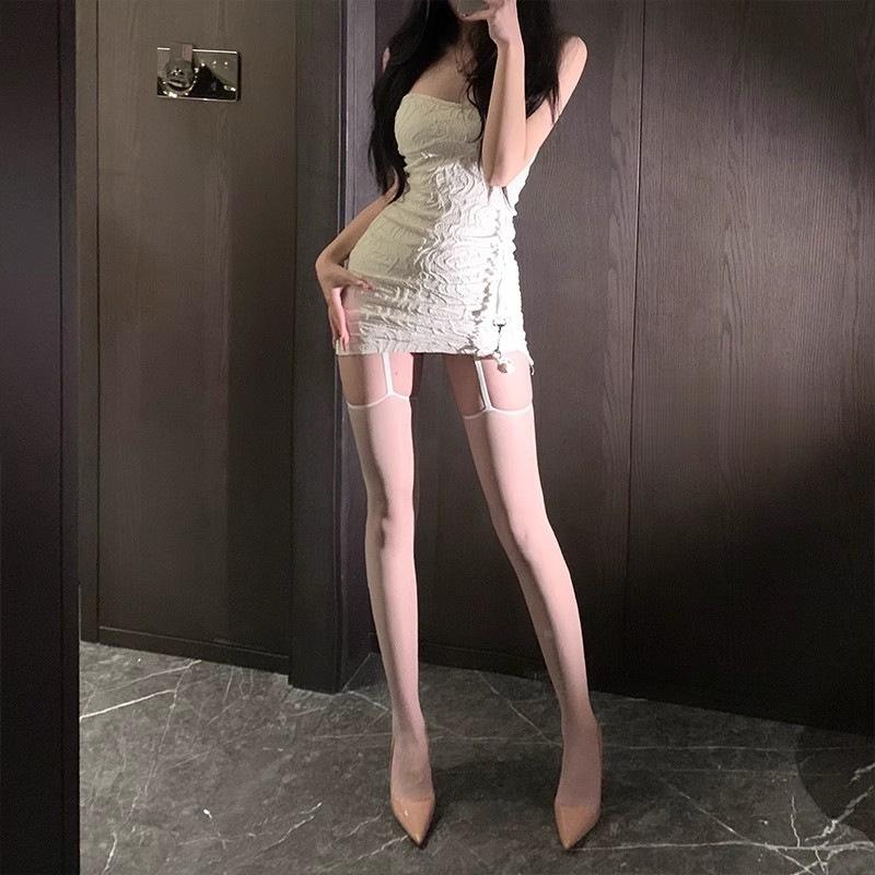 Medias de Seda con Tirantes Sexy de Una Pieza con Borde Rojo Puro y Negro de Contraste de Color, de Borde Ancho Hasta la Rodilla, Tubo Largo Ultrafinas Hulk para Mujer