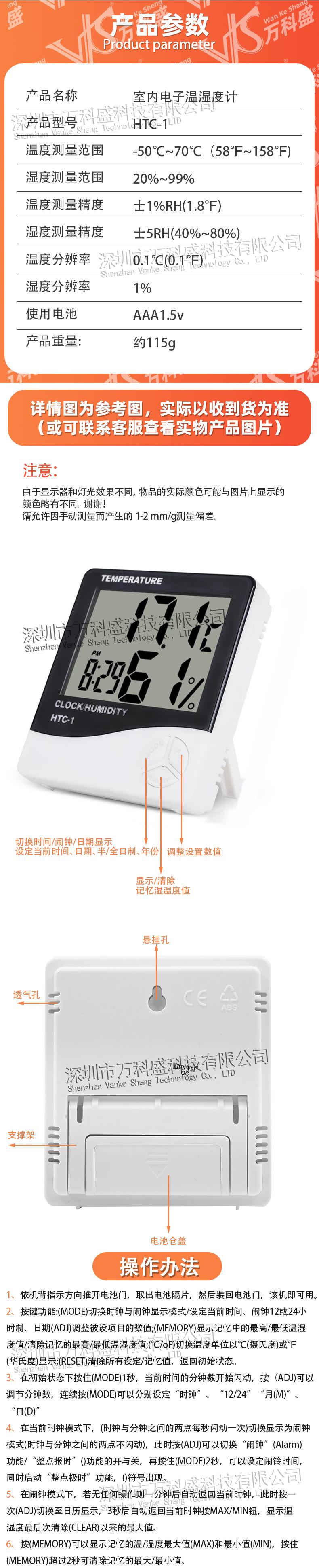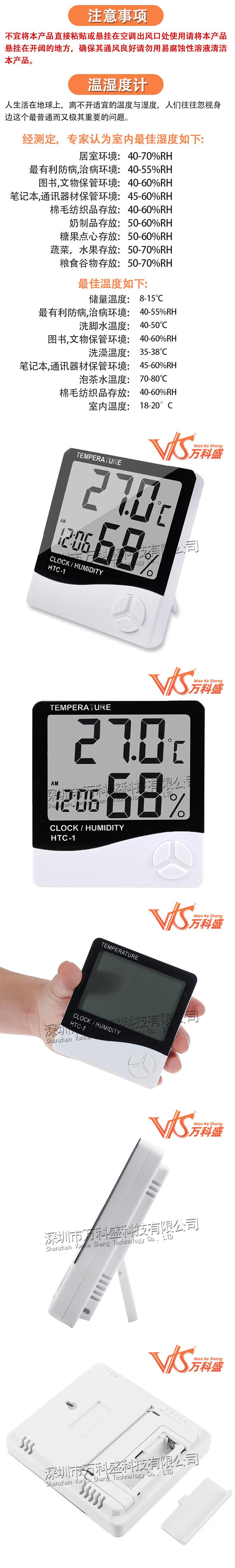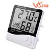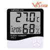 HTC-1 - Termómetro higrómetro electrónico de temperatura para interiores con pantalla grande, reloj despertador y termómetro para el hogar