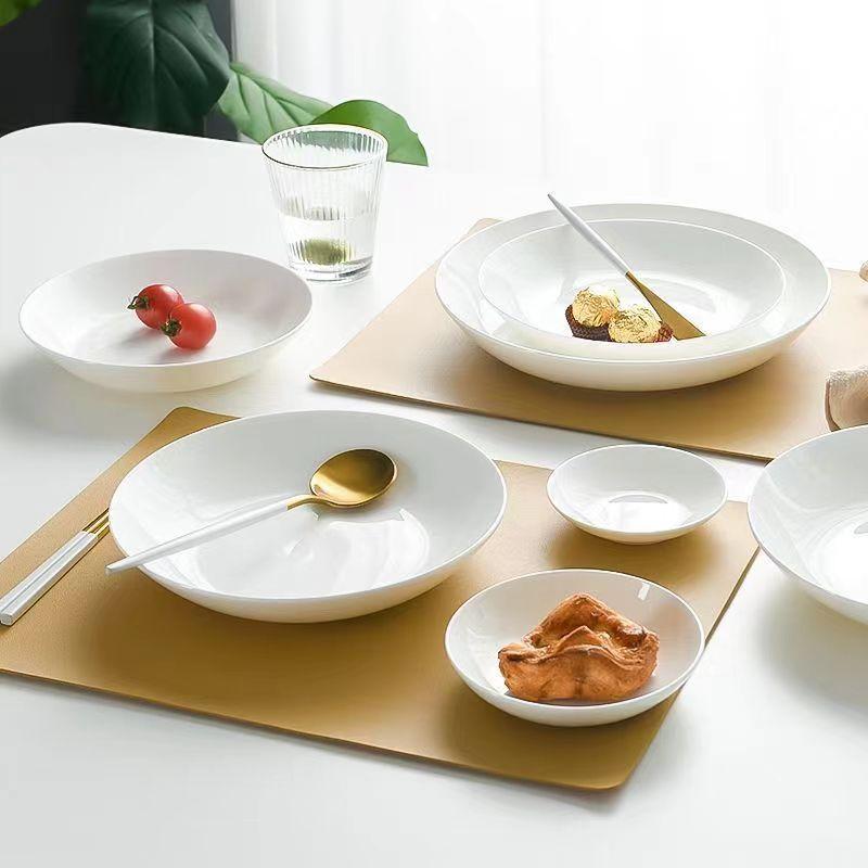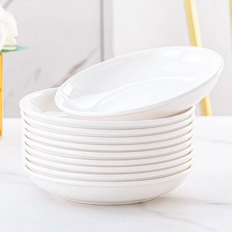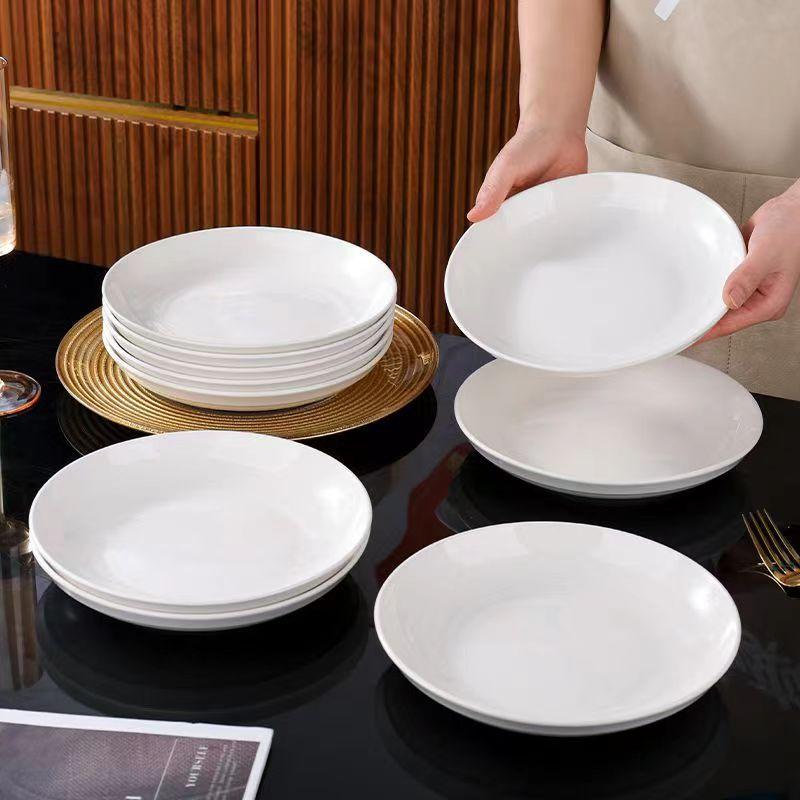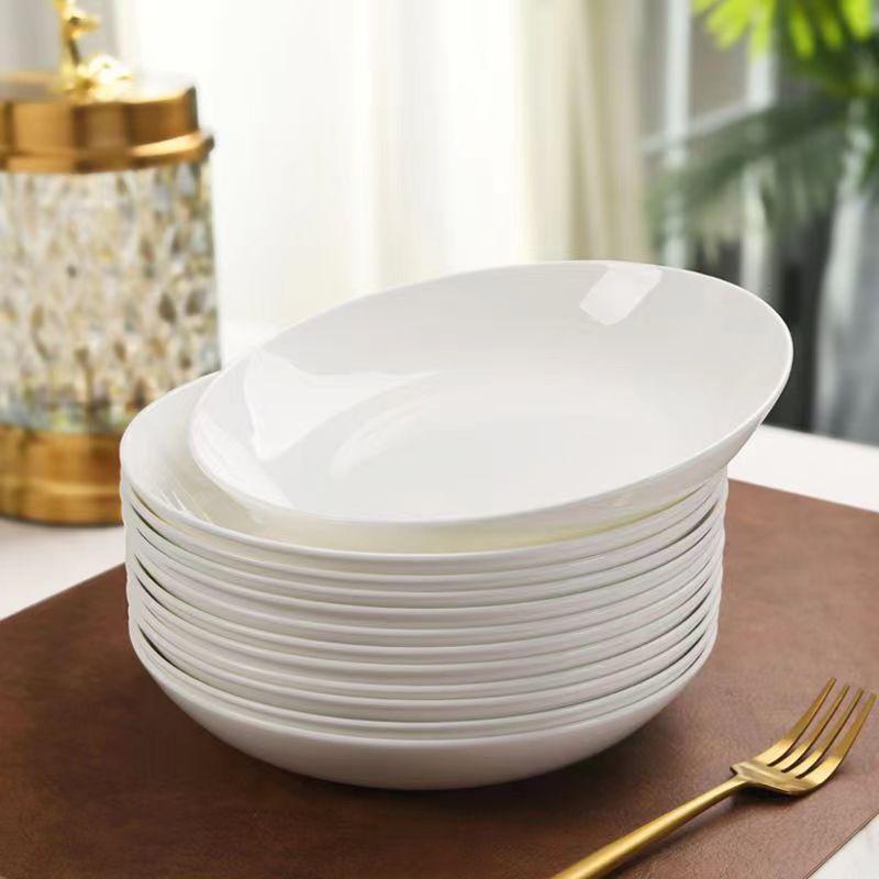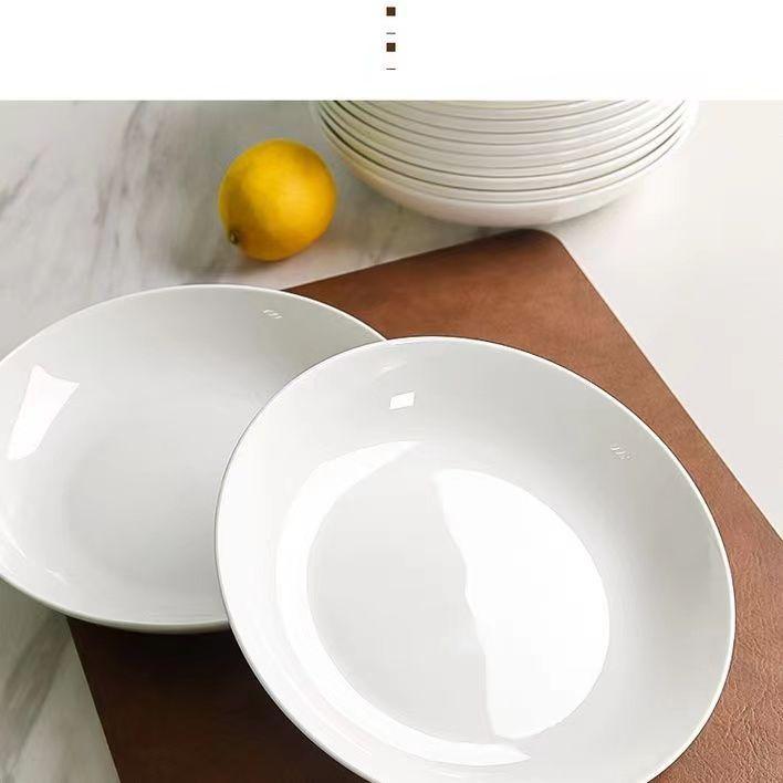 Plato de porcelana blanca para el hogar, blanco puro, blanco, para hotel, plato de cocina, plato de cena, plato hondo, disco ligero, plato de sopa de cerámica de lujo