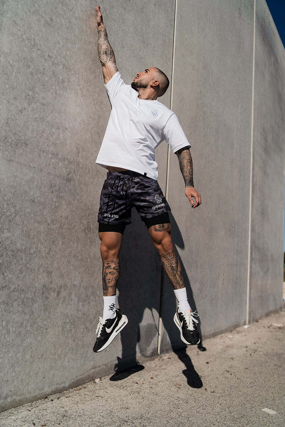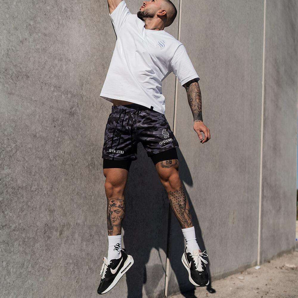 Pantalones cortos deportivos de cinco puntos estilo americano para hombre, nuevos pantalones cortos musculosos de color liso con diseño de gofre para correr, fitness, estilo casual, 2023
