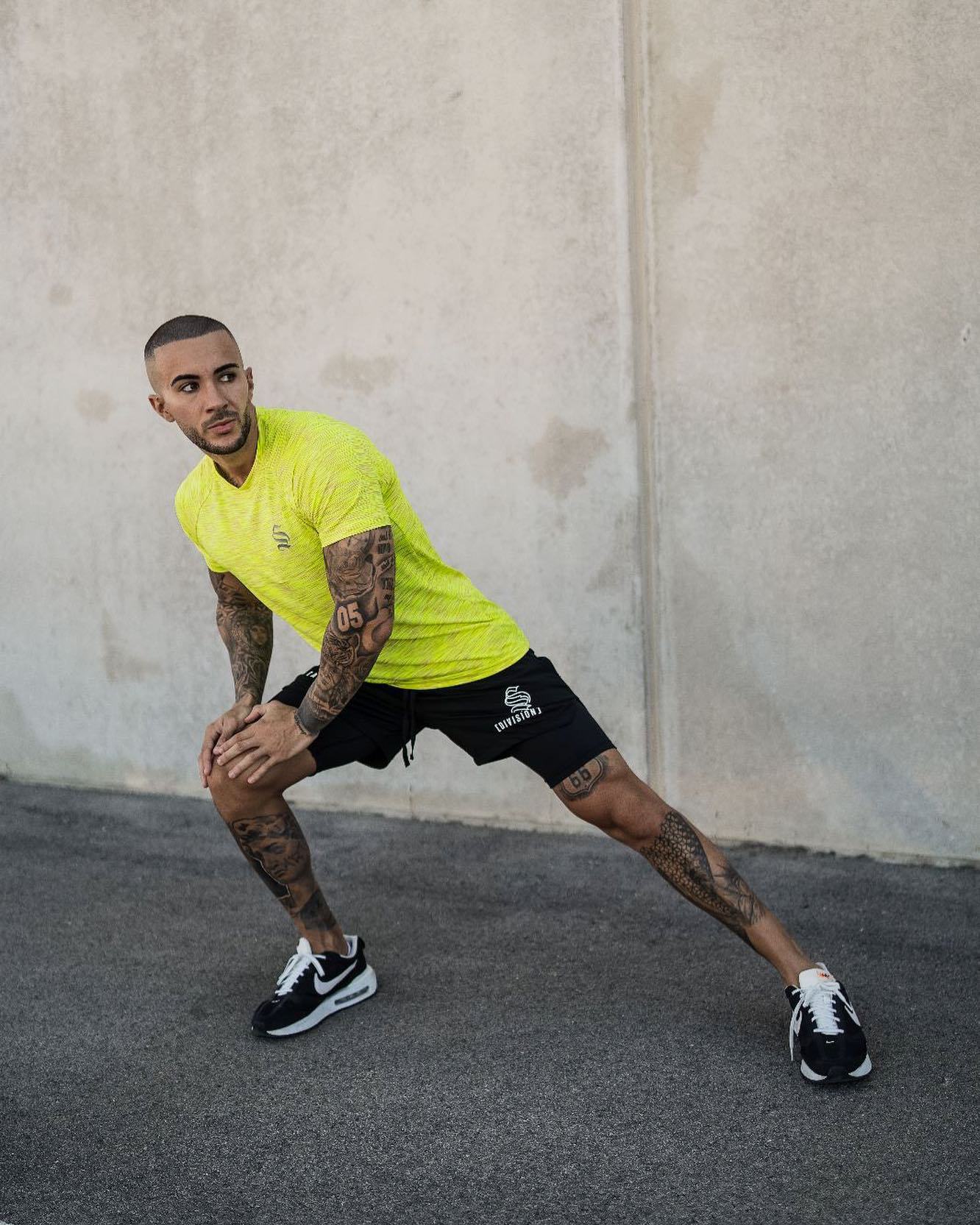 Camiseta deportiva elástica a rayas de color sólido para hombre, de manga corta, ajustada, para baloncesto, otoño, para correr y entrenar