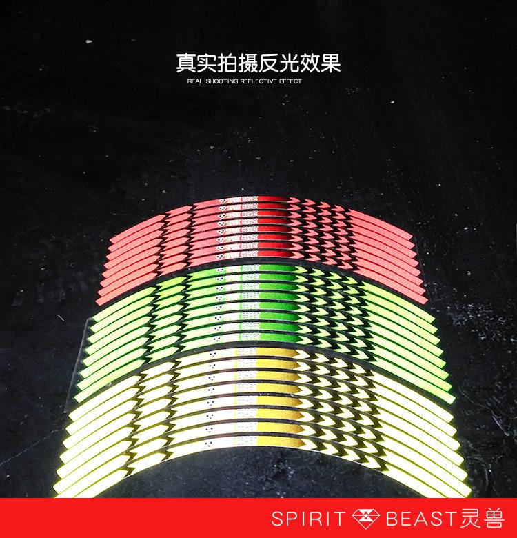 Características: Las pegatinas reflectantes para ruedas pueden reflejar la luz bajo la luz de la noche, brillante y hermosa; esto también aumenta la seguridad de la conducción nocturna.