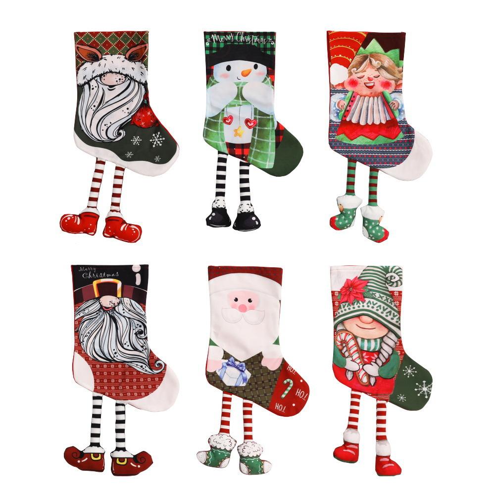 Nuevas decoraciones navideñas transfronterizas, bolsa de regalo con calcetín navideño, gnomo, anciano, muñeco de nieve, elfo, bolsa de dulces navideños