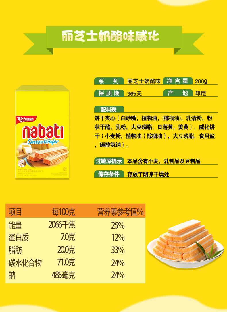 Nombre del producto: Galletas wafer de queso Nabati importadas de Indonesia 200g/caja (12 cajas en una caja)