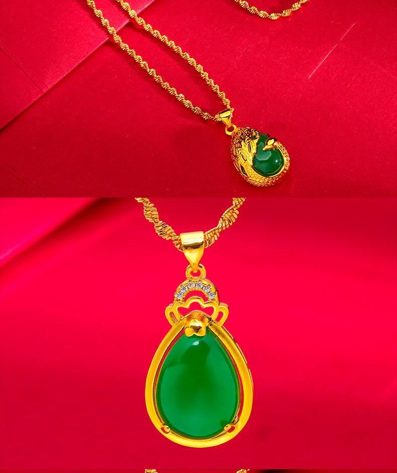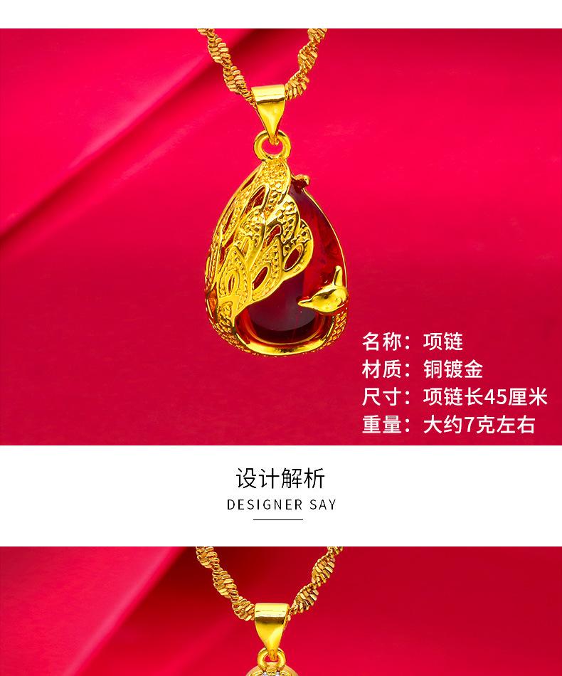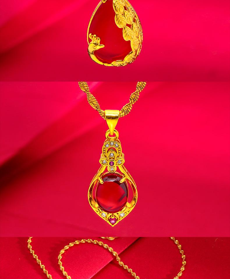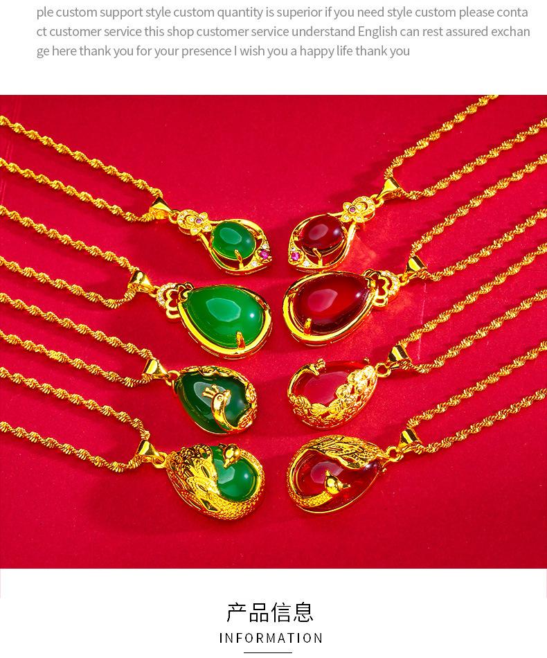 Compra Colgante de pavo real de oro arena de Vietnam para mujer Collar de pavo real verde rojo Gota de agua mujer Cadena de oro arena al por mayor al por mayor en Joom.pro