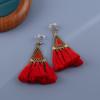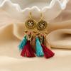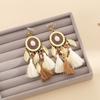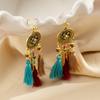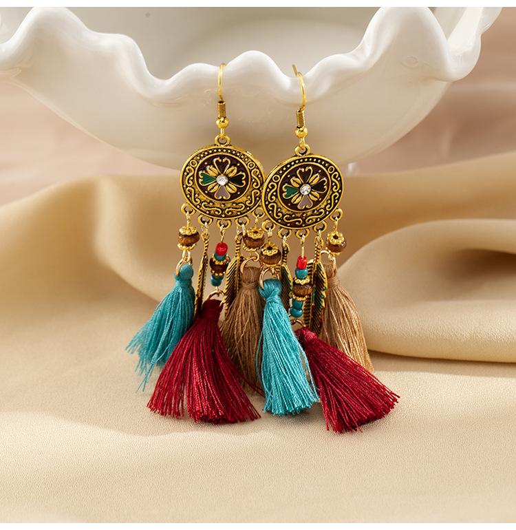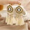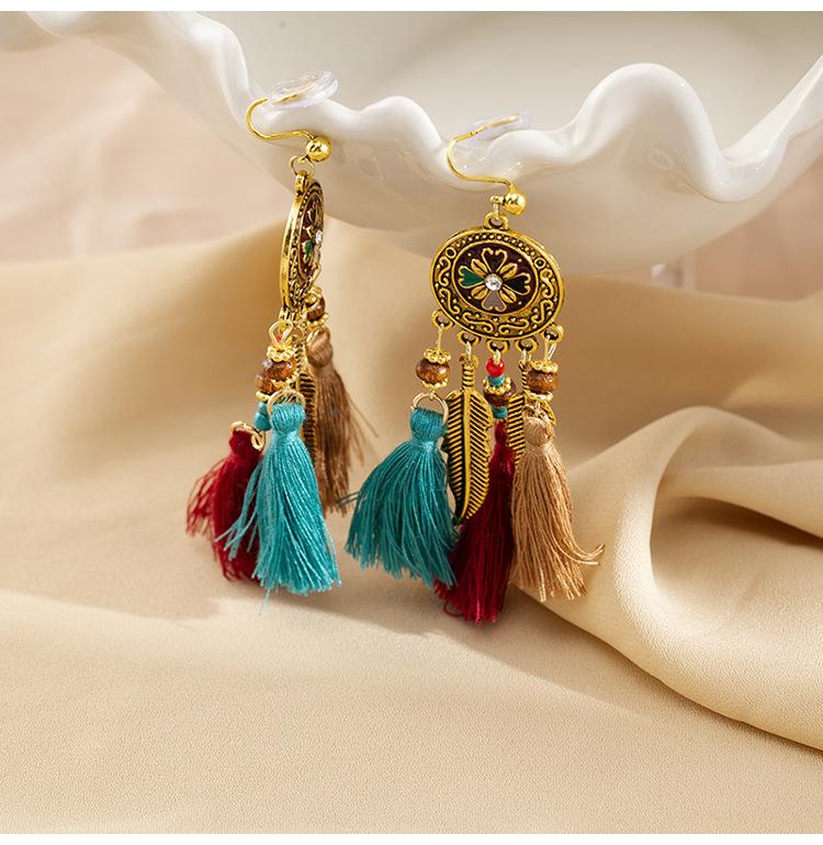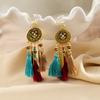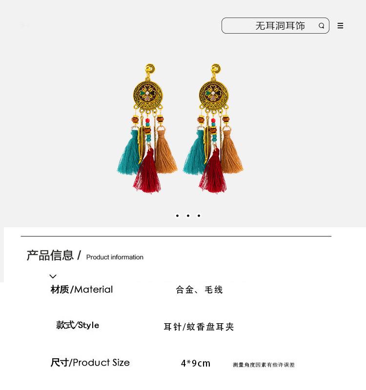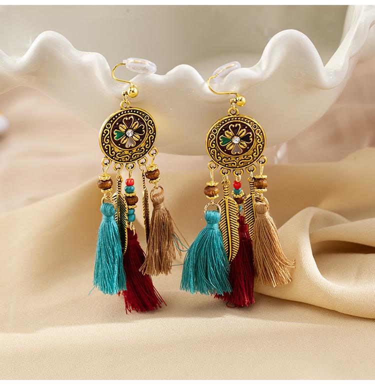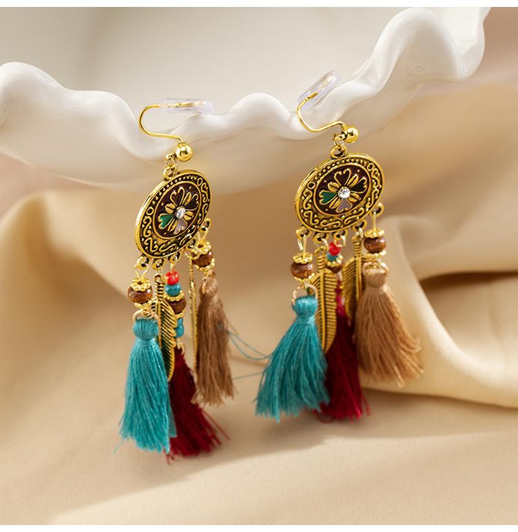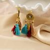 Pendientes largos de cuerda colorida con borlas de estilo étnico, estilo bohemio, retro, personalizados, con clip para la oreja con espiral antimosquitos, sin perforaciones, para mujer