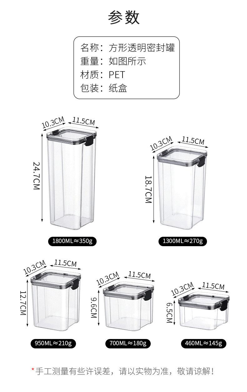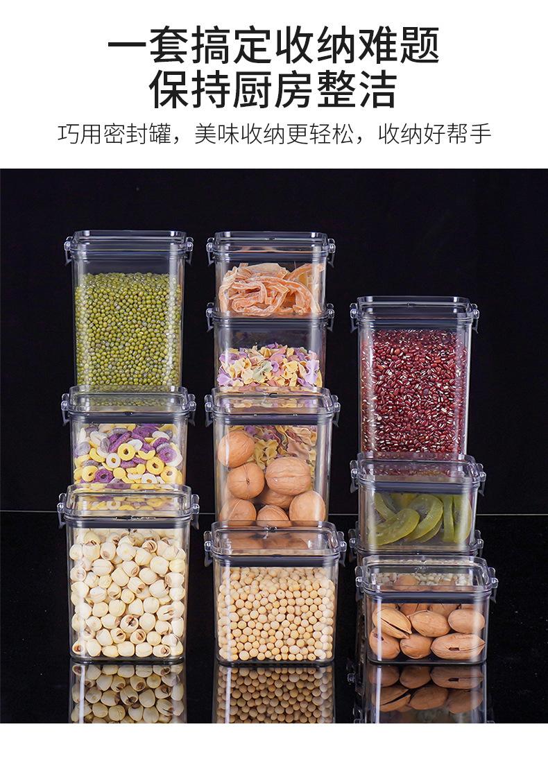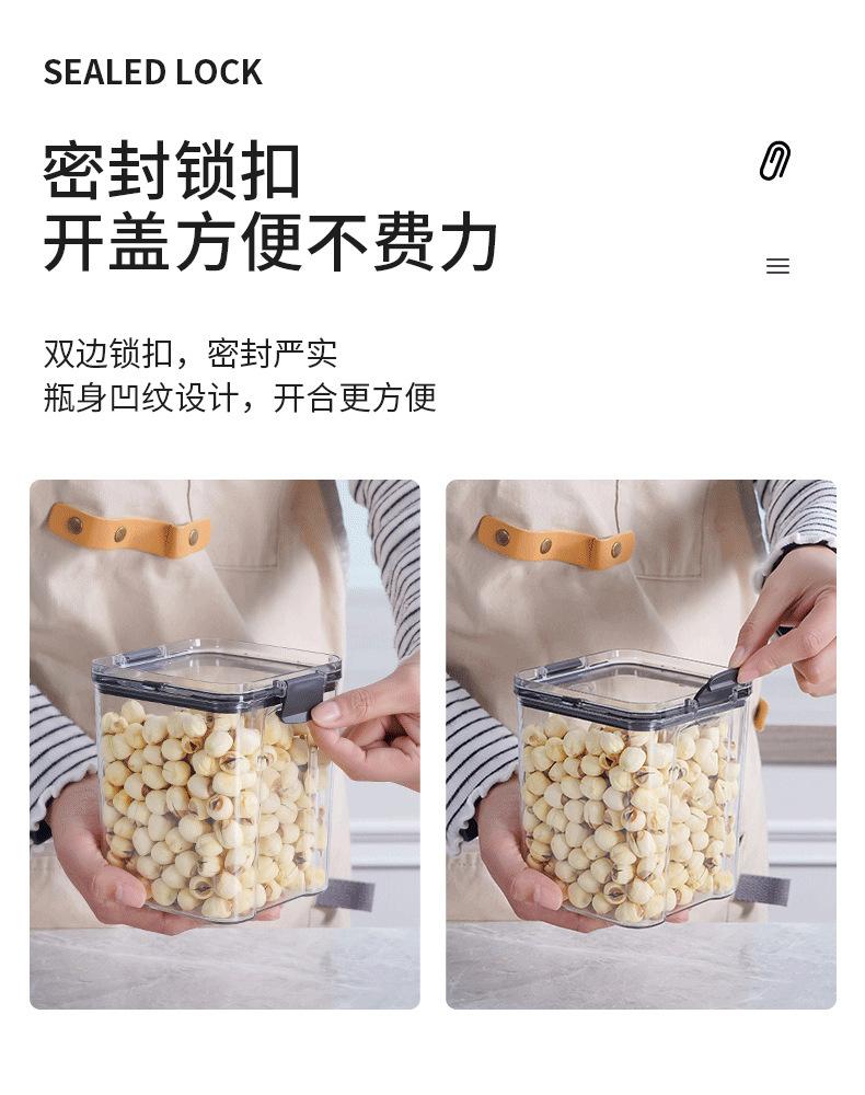 Frasco sellado de plástico transparente de grado alimenticio para almacenar granos, aperitivos y té seco.