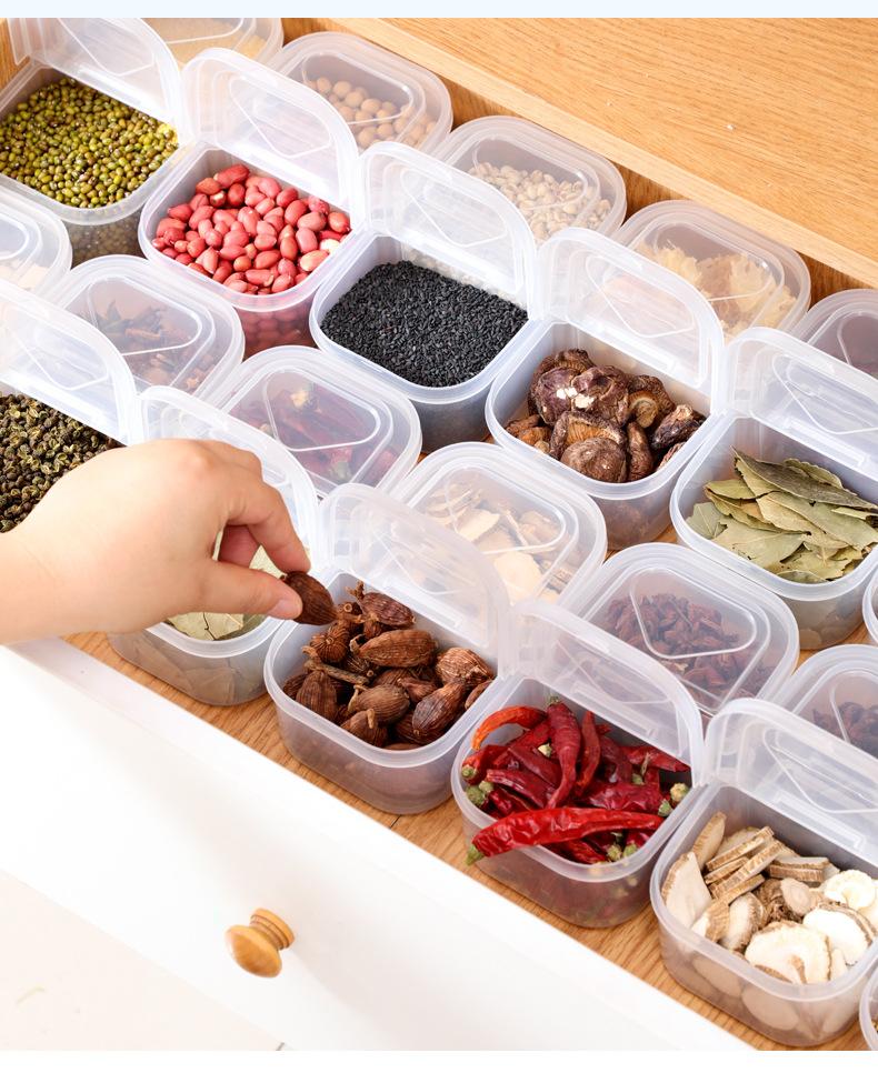 Caja de especias para cocina, para conservar cebolletas, jengibre y ajo, apilable, sellada, de material pequeño apto para uso alimentario.