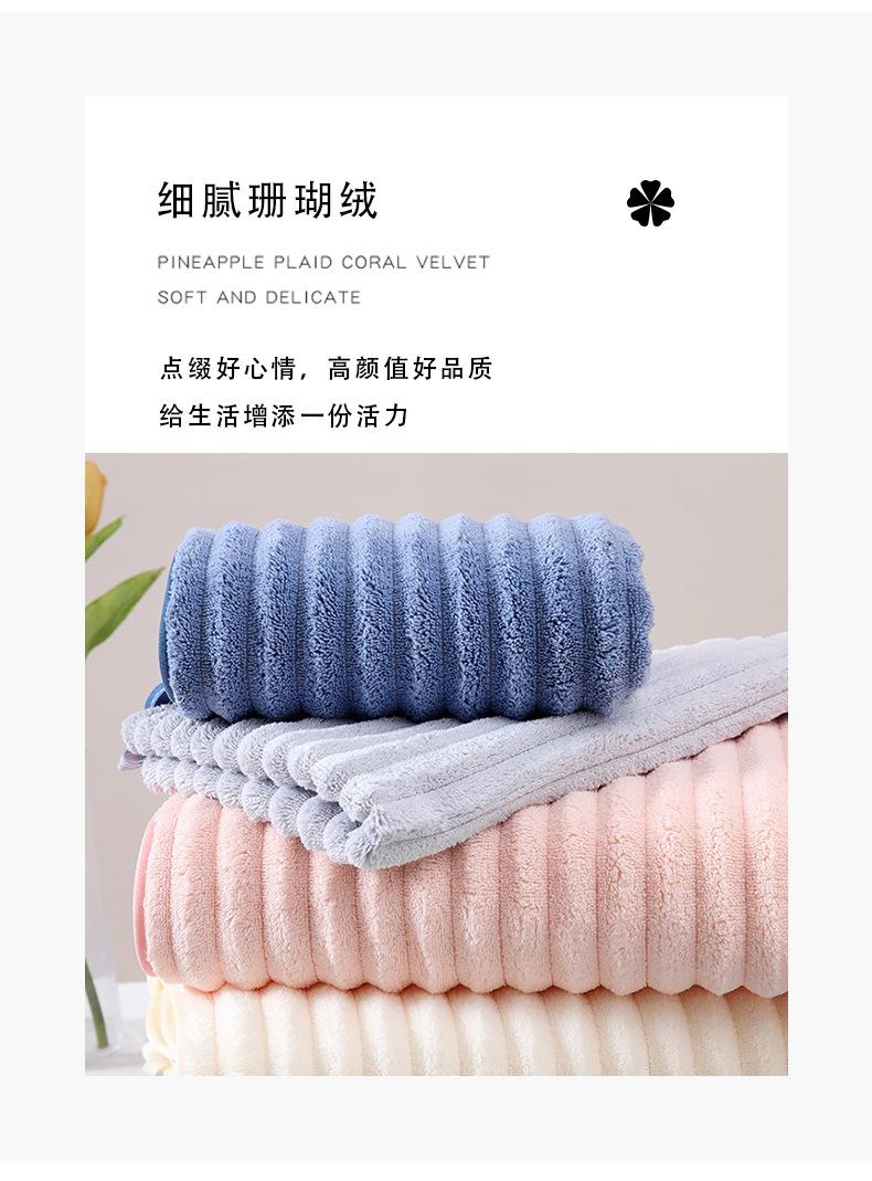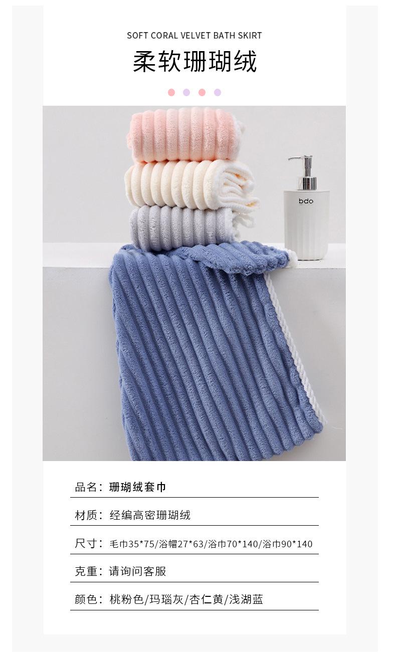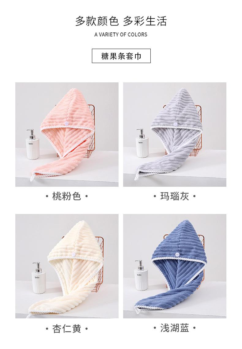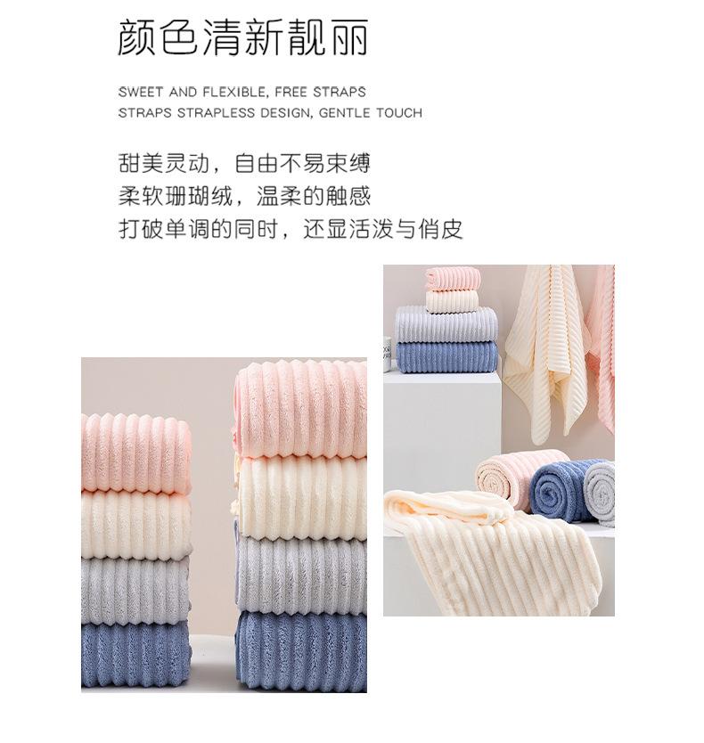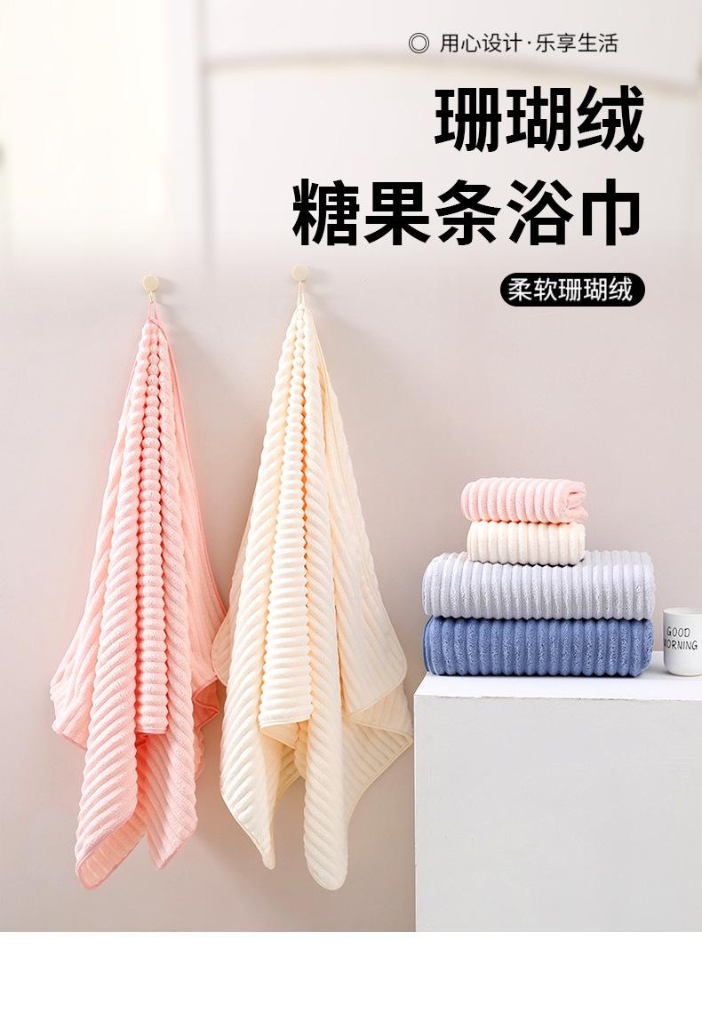 Toalla de Vellón Coral Transfronteriza Toalla de Baño Engrosada Absorbente de Agua Gorro para Secar el Cabello Raya de Caramelo Suave Adulto Hogar Celebrante de Internet Juego de Toallas