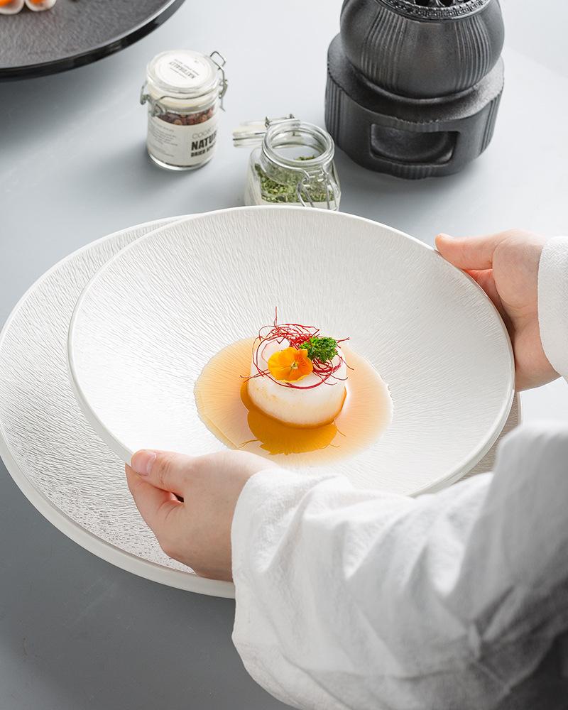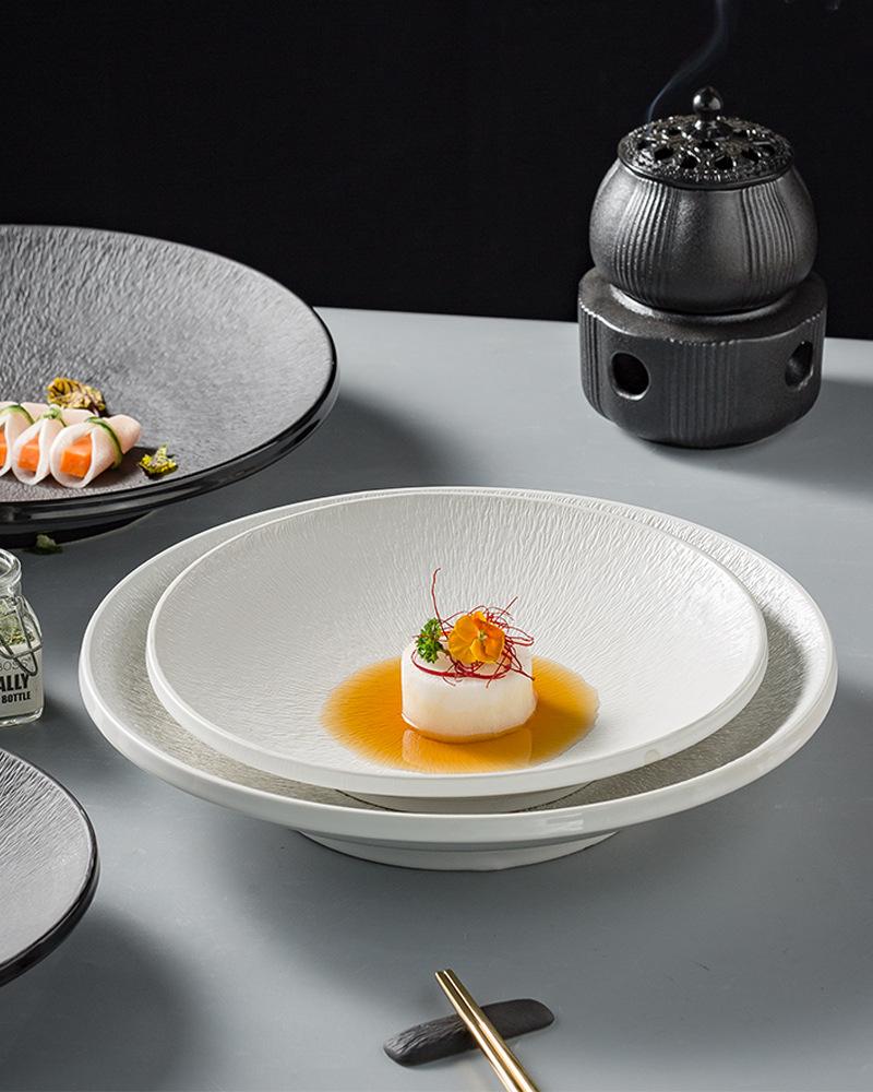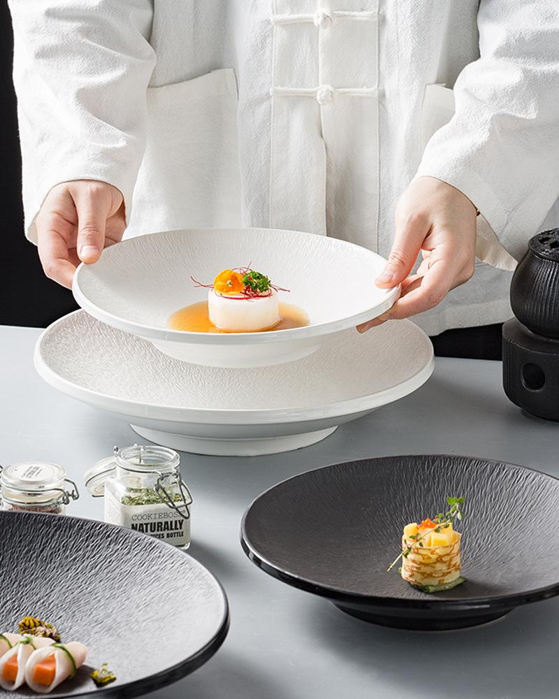 Plato grande de estilo moderno con sentido del sentido, plato hondo para el hogar, vajilla creativa de cerámica, plato occidental para ensaladas, plato de hotel.