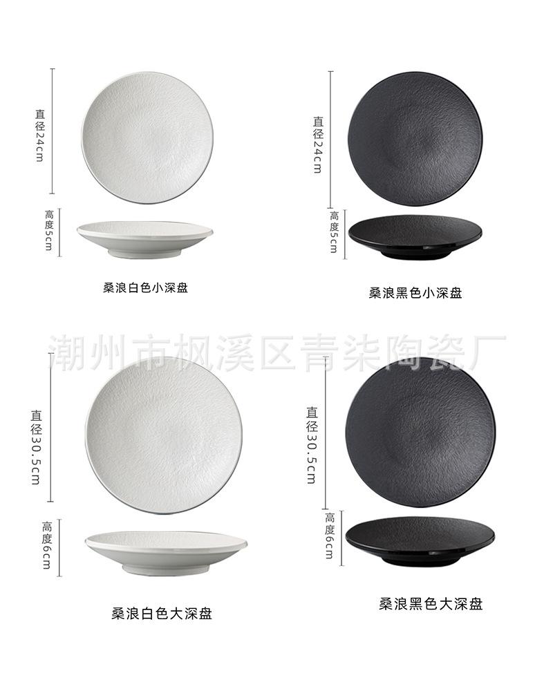 Mulberry Black deep plate 24cm, Mulberry white deep plate 24cm, Sang wave Black deep plate 30.5cm, Mulberry wa...