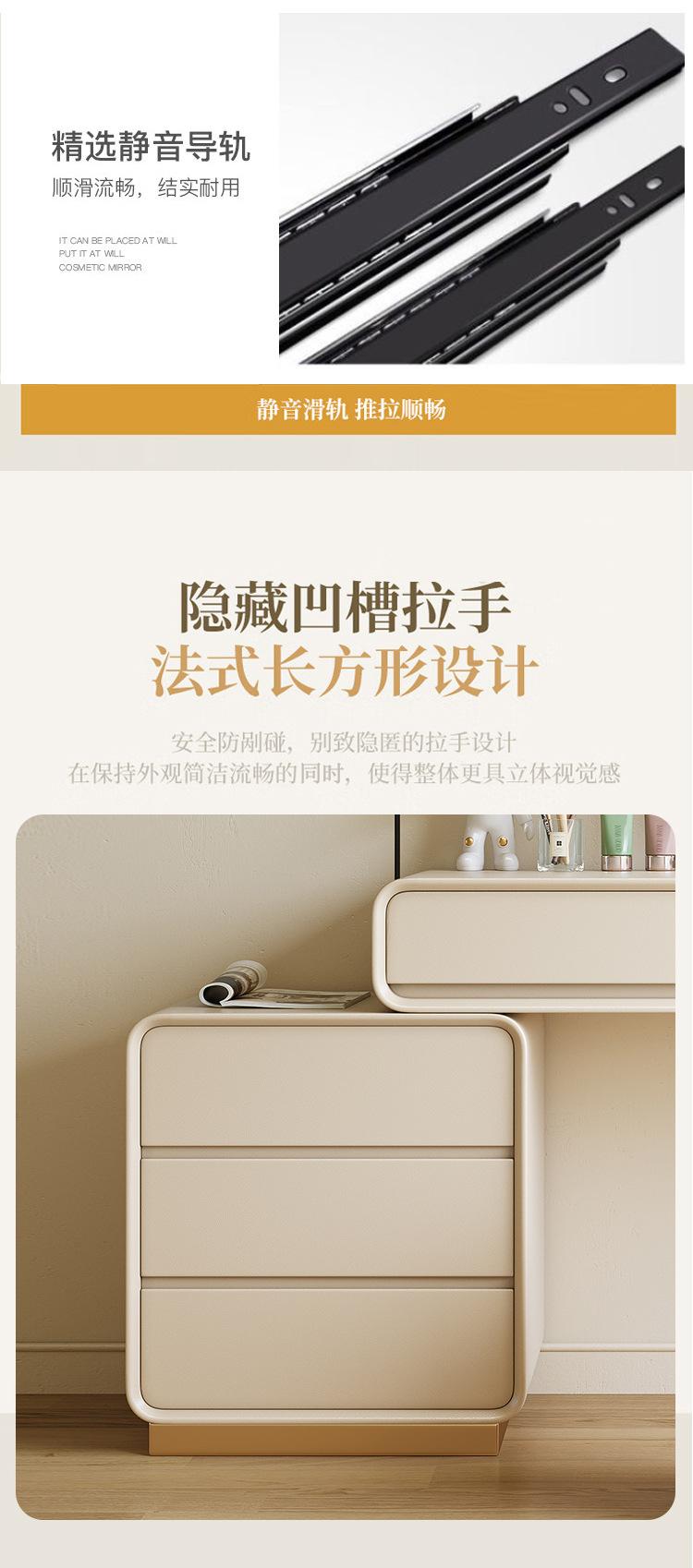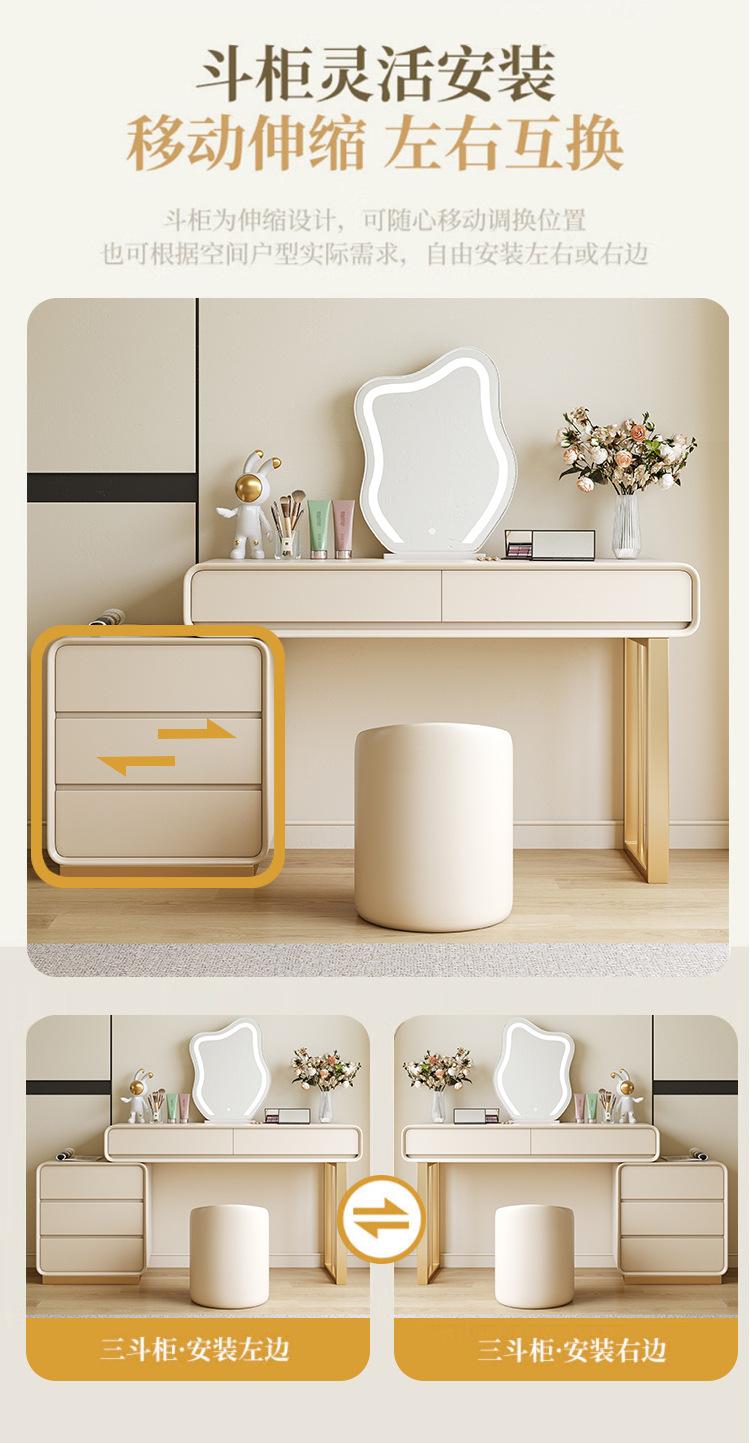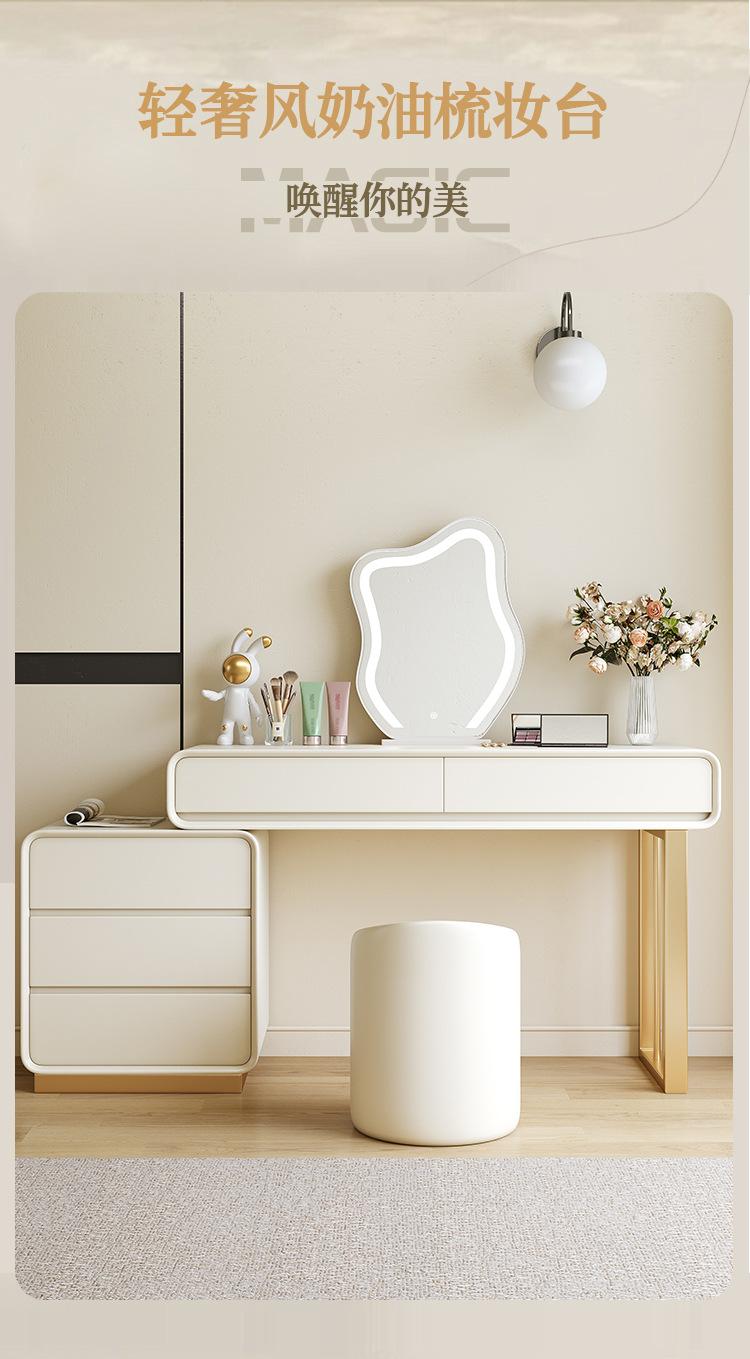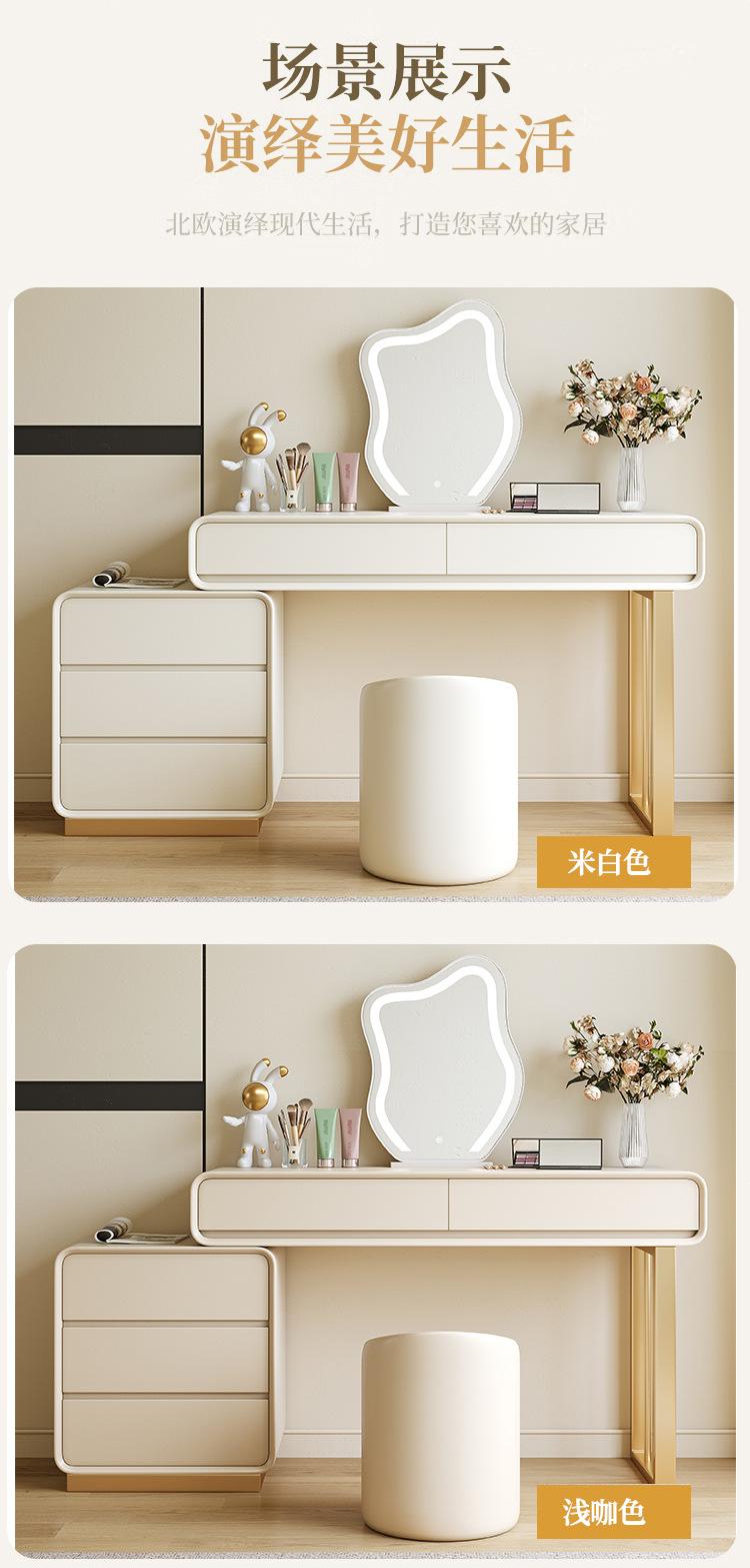 Tocador Minimalista Celebridad de Internet Arte en Cuero Dormitorio de Apartamento Pequeño Estilo Crema Lujo Ligero Mesa de Maquillaje Gabinete de Almacenamiento Gabinete Cubo Integrado