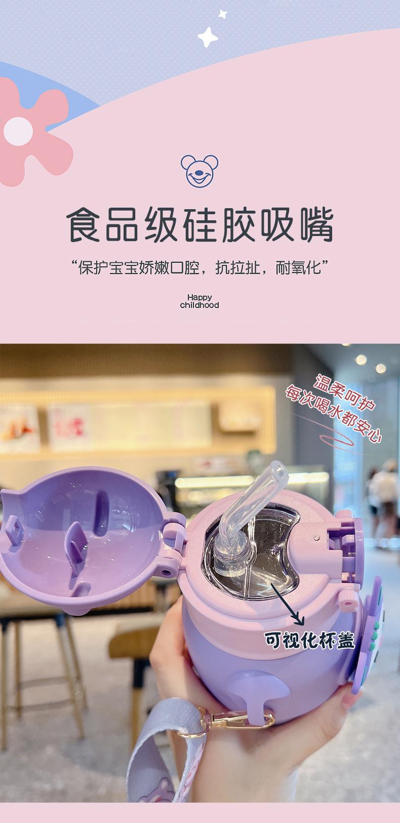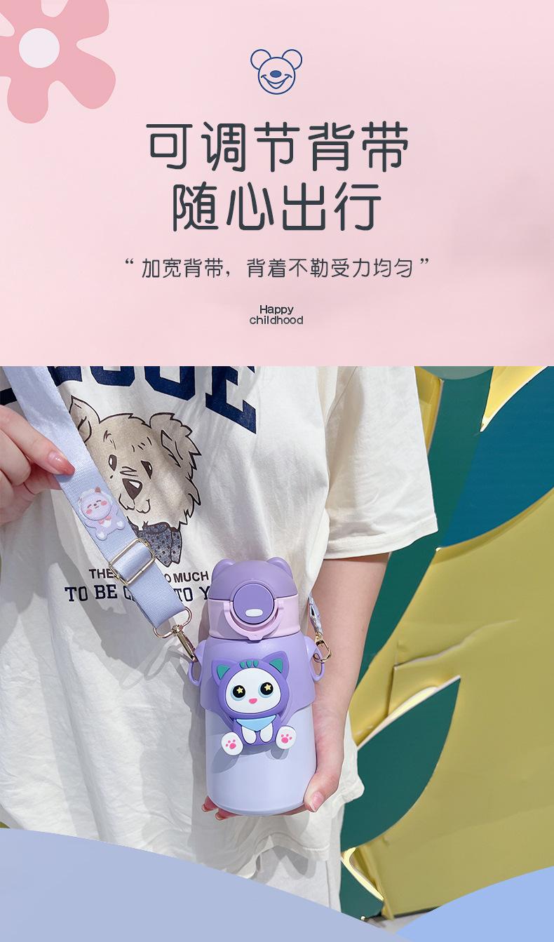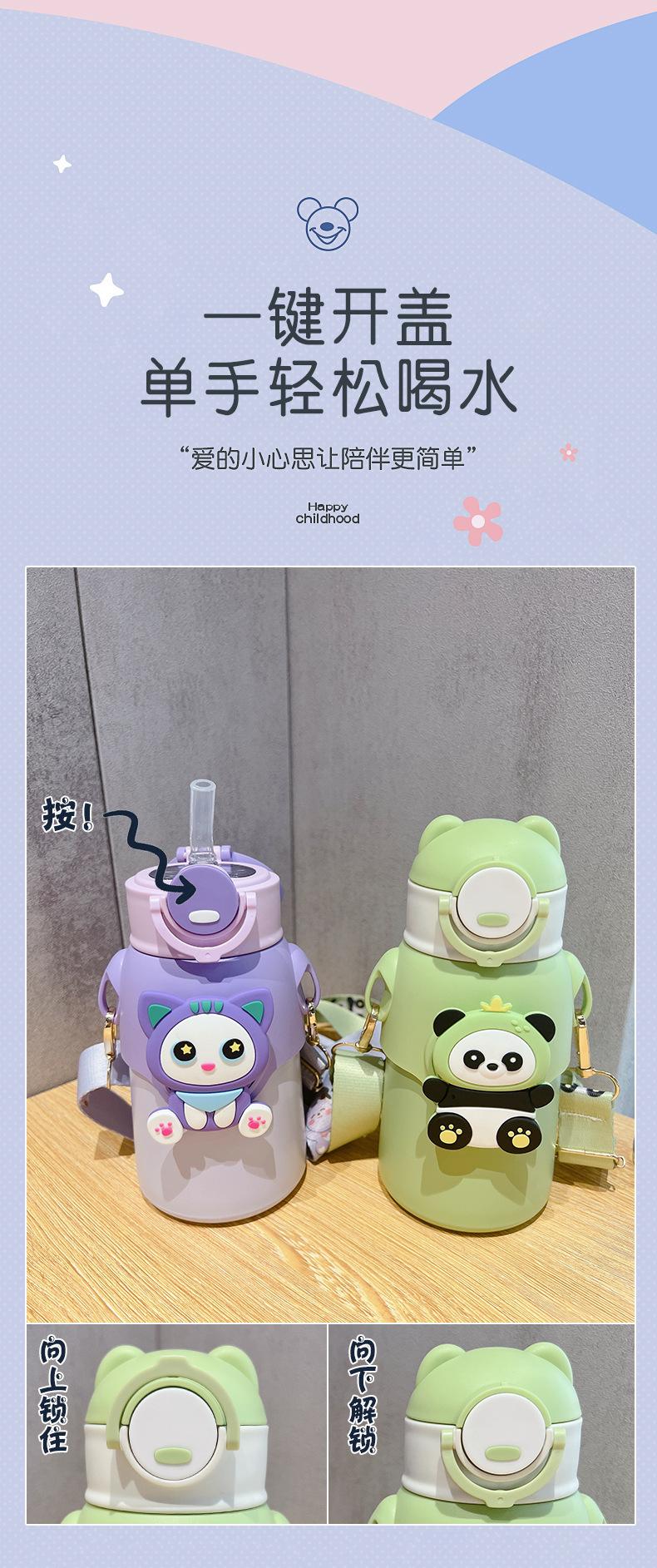 Vaso Termo de Acero Inoxidable 316 con Muñeco de Dibujos Animados, Botella de Agua para Estudiantes, Vaso con Pajita para Niños Pequeños, Vaso de Regalo Portátil