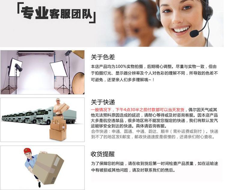 Ciclo de entrega:El tiempo de entrega es una de las cuestiones que más preocupan a los compradores al comprar en línea. Utilizamos empresas de logística recomendadas tras una rigurosa revisión de sus requisitos de entrega. Los retrasos en el ciclo de entrega debidos a factores como la eficiencia de la empresa de logística, días festivos, fuerza mayor, etc., no tienen nada que ver con nuestra tienda. Por supuesto, haremos todo lo posible para ayudarle a recibir la mercancía a tiempo. Los compradores pueden contactarnos para que les ayudemos a reflexionar o presentar una queja a su empresa y solicitar cualquier opinión o sugerencia sobre el transportista y el repartidor durante el proceso de entrega.